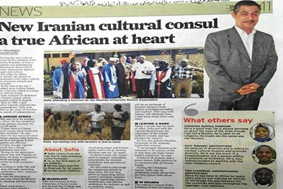 به گزارش ایکنا به نقل از سازمان فرهنگ و ارتباطات اسلامی؛ گزارش تحلیلی روزنامه پر تیراژ و دولتی «نیوویژن» اوگاندا با عنوان «رایزن فرهنگی جدید ایران قلباً یک آفریقایی حقیقی است» منتشر شد. ترجمه فارسی متن این گزارش به این شرح است: