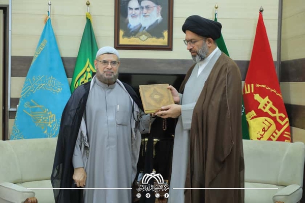 هذا وخلال تواجده في المقام المبارك، التقى وفد المركز مع معاون التولية الشرعية السيد مشرف، حيث جرى إهداء نسخة من مصحف العتبة الحسينية المقدسة الذي يتضمن محتوى تفسيرياً مضافاً إلى ميزة رمز الاستجابة السريع (QR).