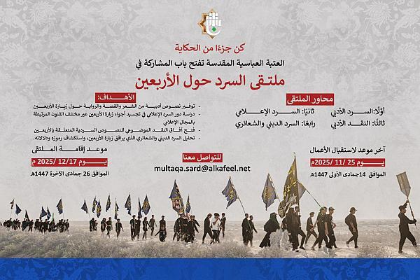 وقال رئيس القسم السيد علي البدري: "في إطار سعي قسم إعلام العتبة العباسية المقدسة لتقديم قراءة شاملة وعميقة للزيارة الأربعينية المباركة، والتي تعد ظاهرة إنسانية ودينية غير مسبوقة، تتجاوز حدود الزمان والمكان، نعلن عن إطلاق ملتقى السرد حول زيارة الأربعين، الذي يعد مبادرة ثقافية وإعلامية واسعة تهدف إلى جمع وتوثيق وتحليل النصوص الأدبية والإعلامية المرتبطة بمسيرة الأربعين المليونية".