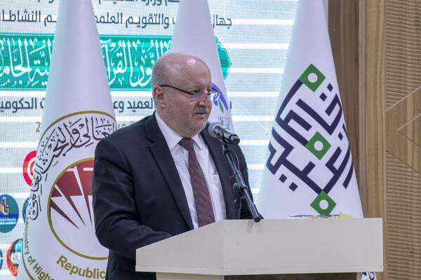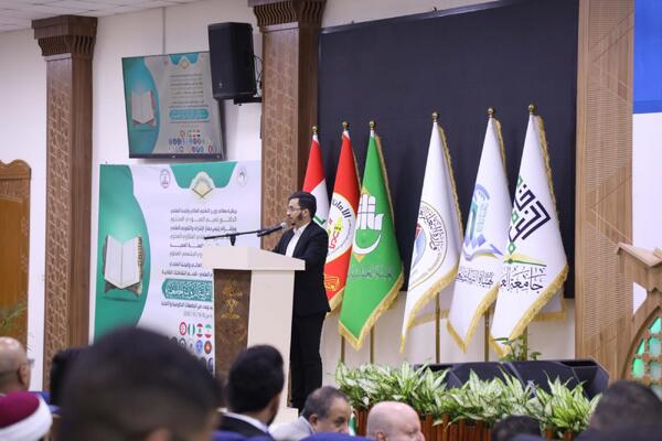 للمجمع العلمي للقرآن الكريم في العتبة العباسية المقدسة ألقاها معاون رئيس المجمع الدكتور علاء الموسوي، وتقديم فقرات إنشادية وتكريم للجامعات المستضيفة.