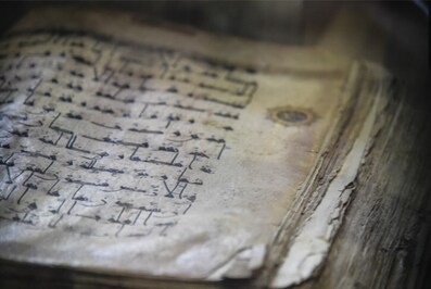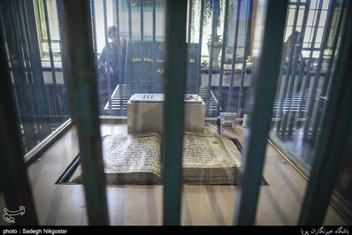 وأبعاد هذا القرآن البُنّي اللون هي 21 في 38 سنتيمتراً، ويُنسب تاريخه إلى العصر الإسلامي، وتحديداً إلى عهد الخليفة الثالث؛ ويُروى أنه قبل حوالي ألف عام، وفي هذا المكان الذي كان مرعى واسعاً لرعي الأغنام، كان راعٍ أثناء رعيه لغنمه يبحث عن زهرة جميلة، وعندما أراد اقتلاعها، حفر حفرة حولها، وفجأة وجد صندوقاً مدفوناً بداخله نسخة من المصحف الشريف.