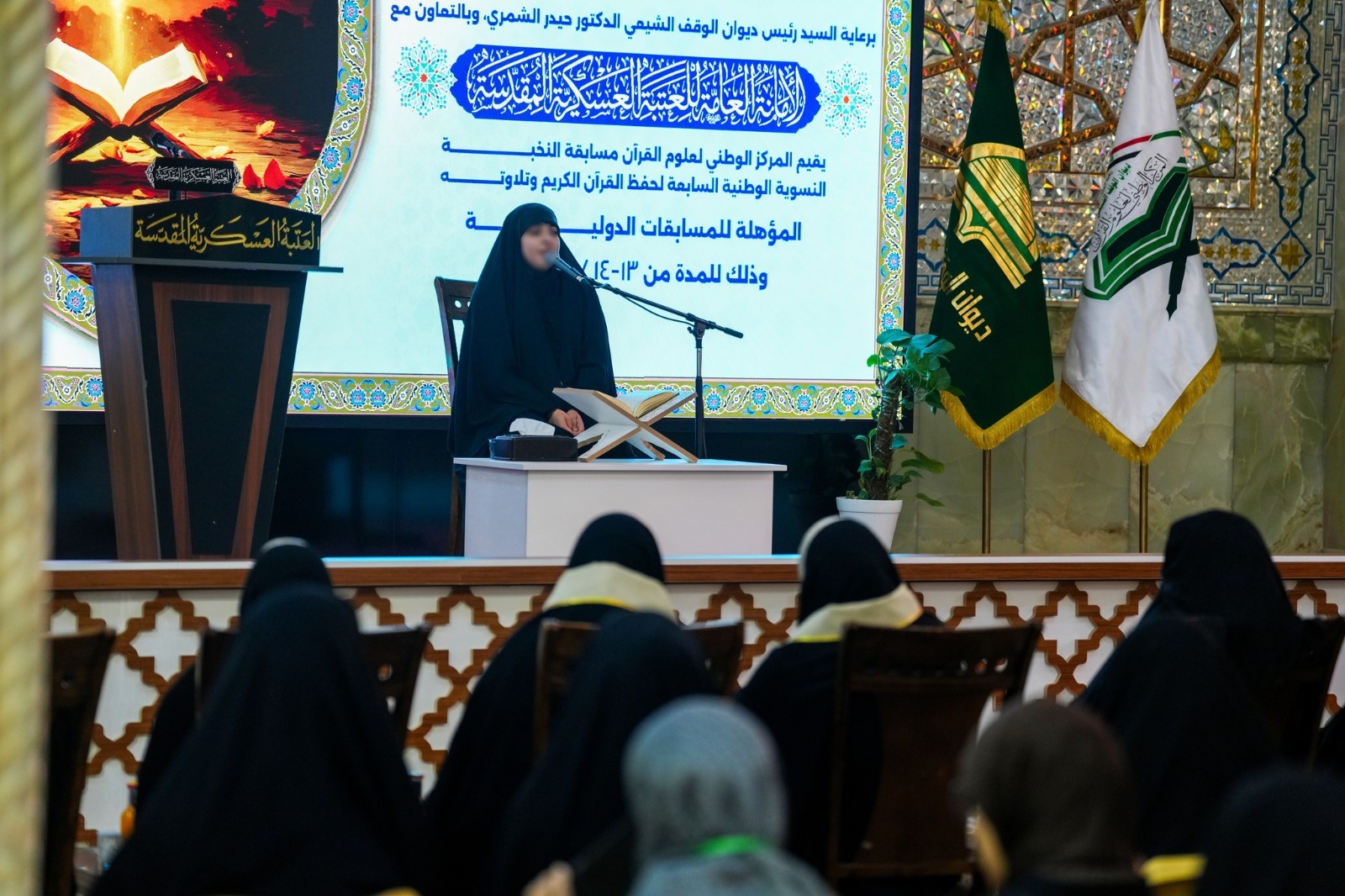 تلتها كلمة رئيسة لجنة تحكيم المسابقة الحافظة فاطمة الظاهري، قدمت فيها الشكر والتقدير إلى السيد رئيس ديوان الوقف الشيعي في العراق الدكتور حيدر الشمري على دوره الكبير في دعم