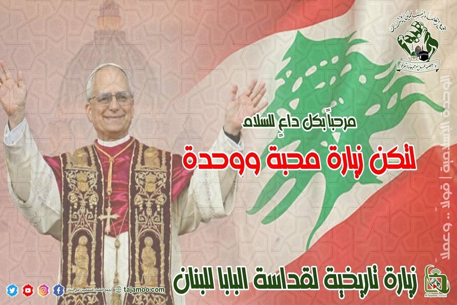 أولاً: يرحب تجمع العلماء المسلمين بزيارة البابا لاون الرابع عشر ويعتبرها فرصة لتدخل رأس الكنيسة الكاثوليكية في العالم للضغط على الدول الراعية للإرهاب الصهيوني وعلى رأسها الولايات المتحدة الأمريكية، لإيقاف عدوانها على لبنان والتزامها بالقرار 1701، ويؤكد التجمع على أهمية الوحدة الوطنية التي ستتجلى من خلال هذه الزيارة.