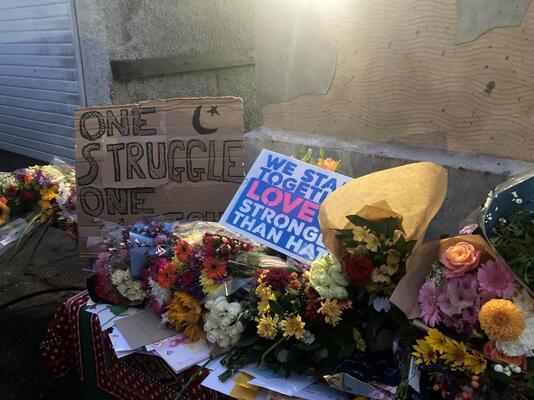 The vigil was held on Friday 10 October, nearly a week after the attack. Organisers said the aim was to bring people together and show solidarity. Attendees left handwritten cards and flowers outside the building.