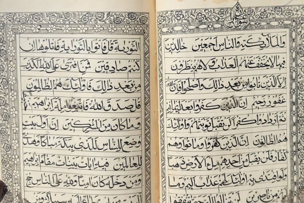 The manuscript, known for its fine calligraphy and intricate illumination, was written and decorated about 120 years ago by the late Molla Hossein Zaman, a renowned artist from the region.