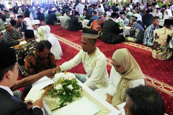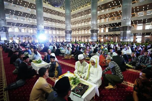 In Pictures: Jakarta’s Iconic Mosque Hosts Mass Wedding as 51 Couples Begin Married Life