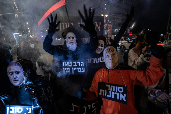 The newspaper said hundreds gathered at the Horev Junction with anti-regime banners to demand an end to the war.