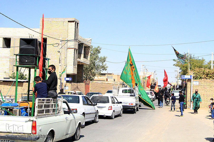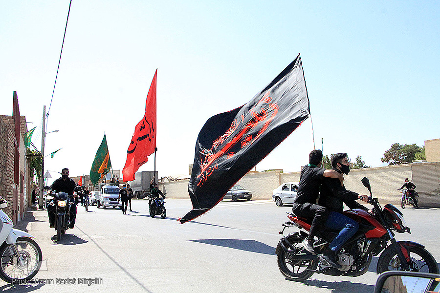 عزاداری هیئت سینه زنی مهدیه شاهدیه یزد در روز تاسوعا به صورت کاروان خودرویی برگزار شد.