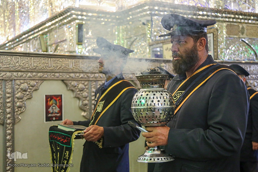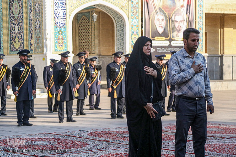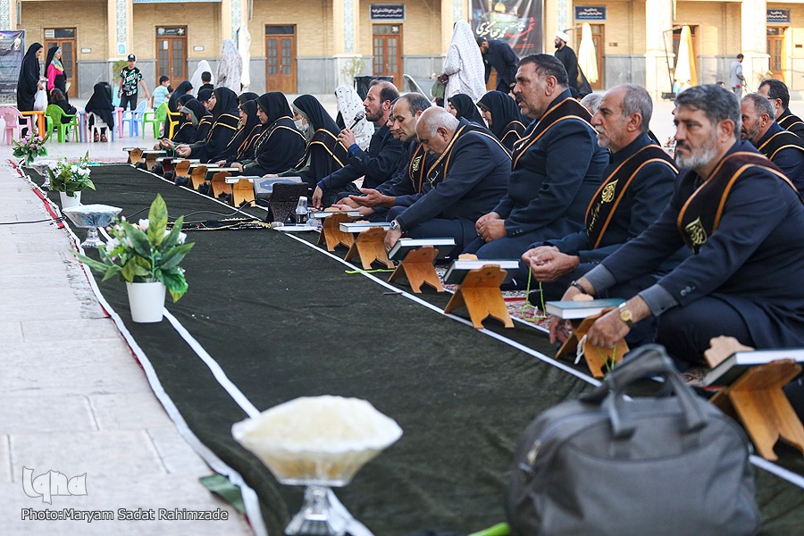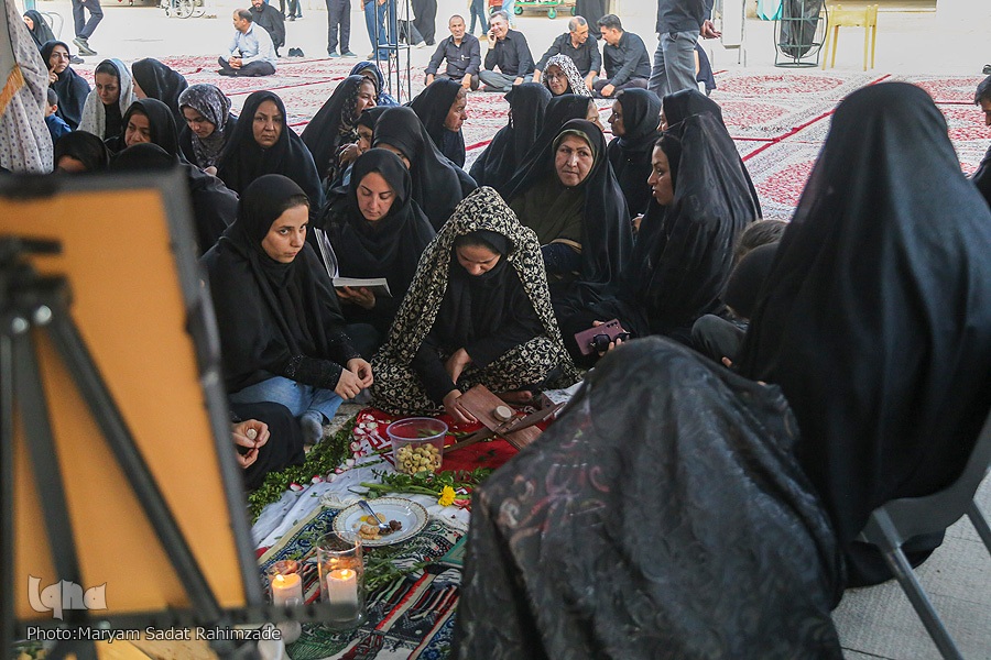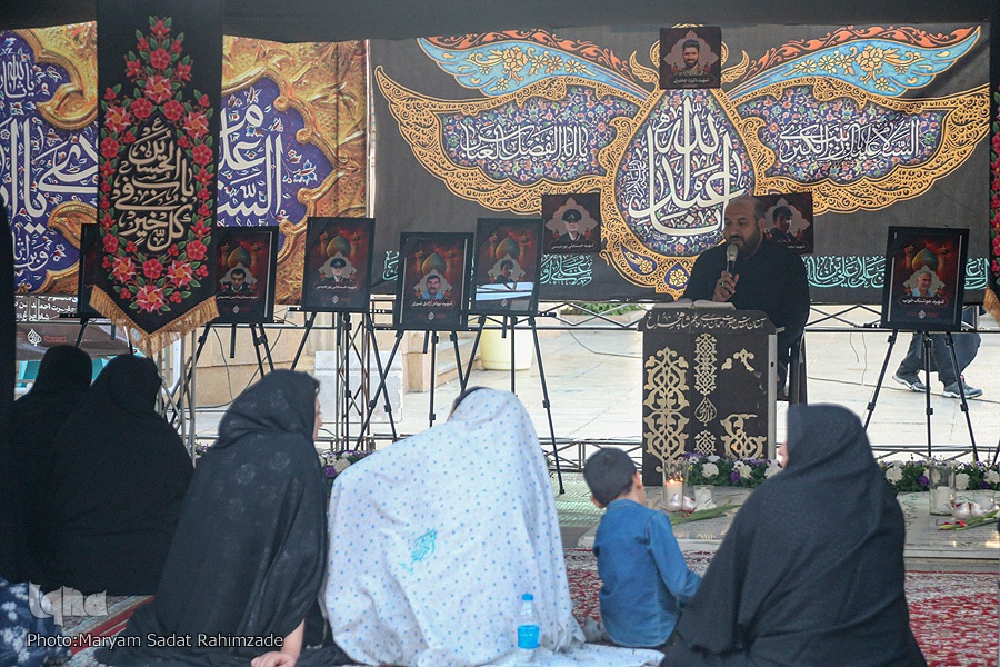 مراسم آئینی سفره صلوات خدام حرم مطهر و محفل انس با شهدای والامقام آستان مقدس، در جوار قبور مطهر این شهدای گرانقدر برگزار شد. در این محفل، قاری ممتاز استان فارس حسام قانعی، آیاتی چند از کلامالله مجید را هدیه به ارواح طیّبه شهداء تلاوت کرد. در ادامه حجتالاسلام مهدی پارسایی، به روایتگری زندگی شهدا پرداخت و محمدرضا فرخی، مرثیهسرایی کرد.