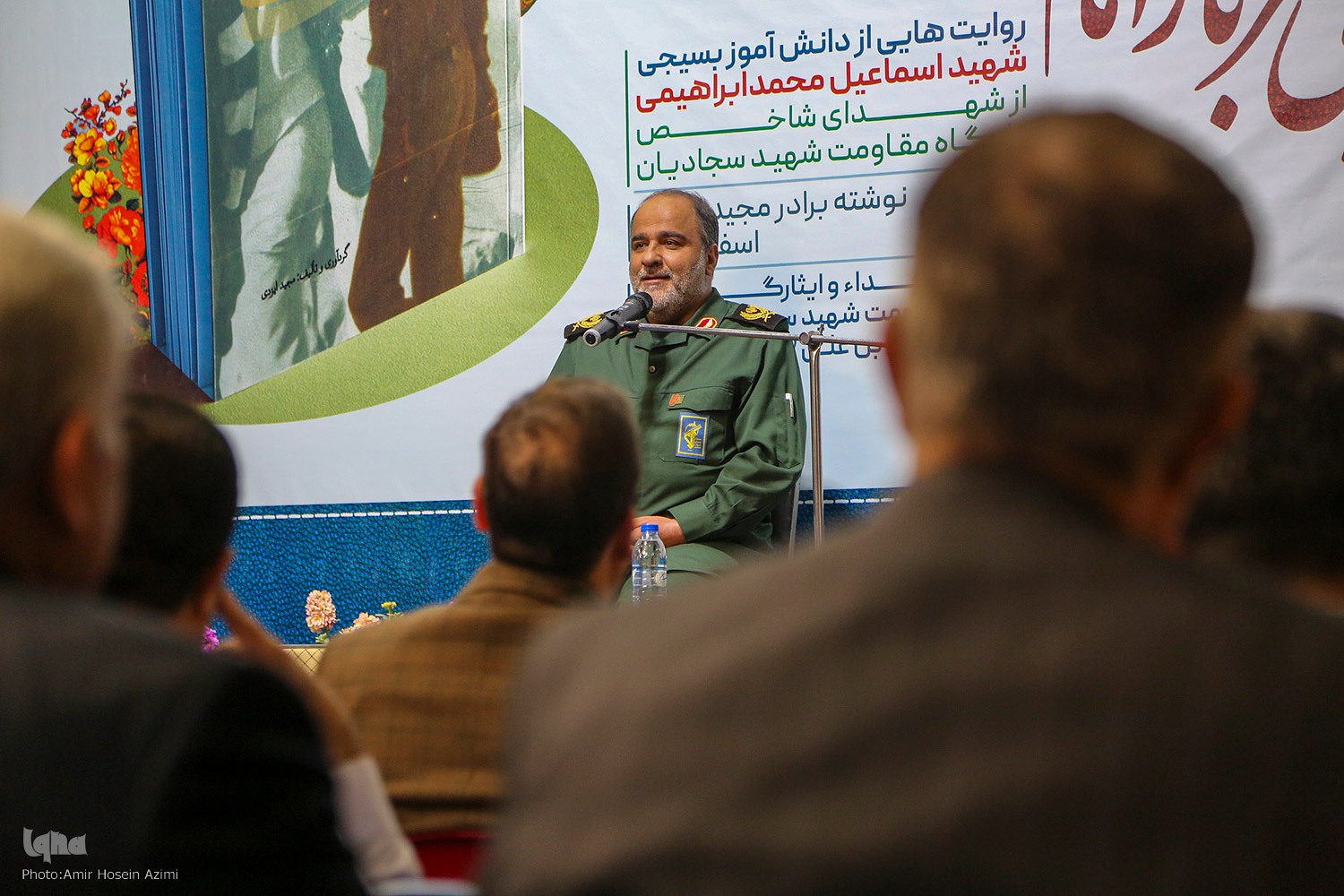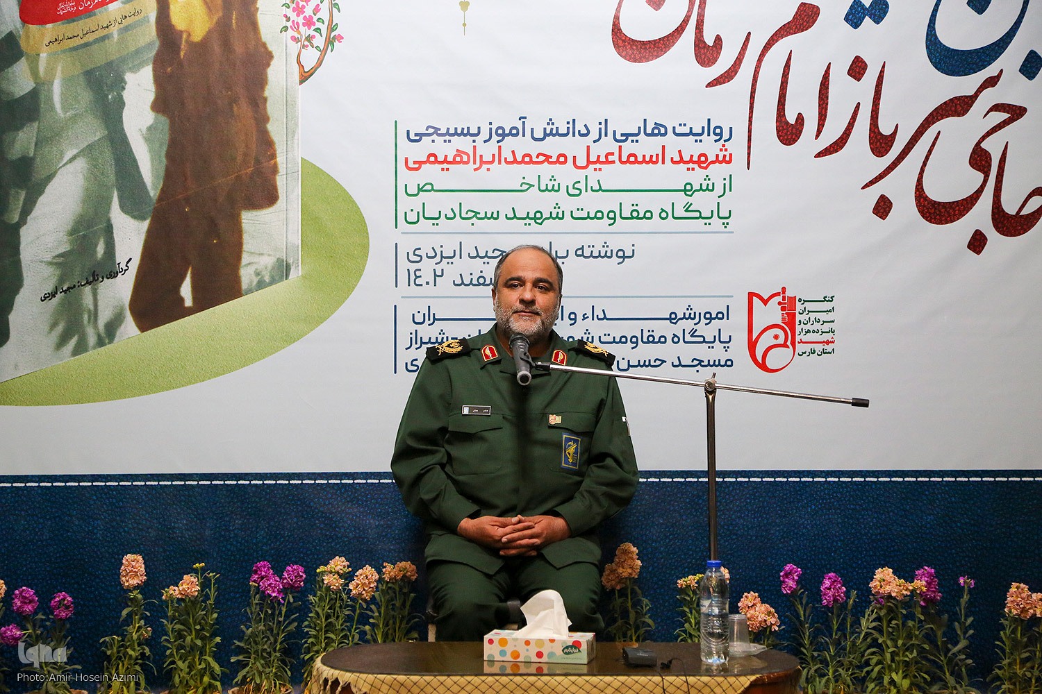 آئین رونمایی از کتاب حاجی سرباز امام زمان روایت هایی از دانش آموز بسیجی شهید اسماعیل محمد ابراهیمی با حضور خانواده معظم شهدا و ایثارگران و سردار جمالی جانشین محترم فرمانده سپاه فجر فارس در شیراز برگزار شد.
