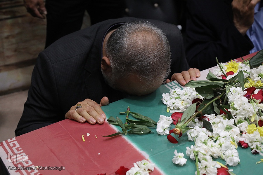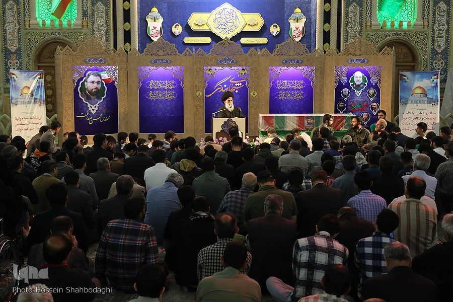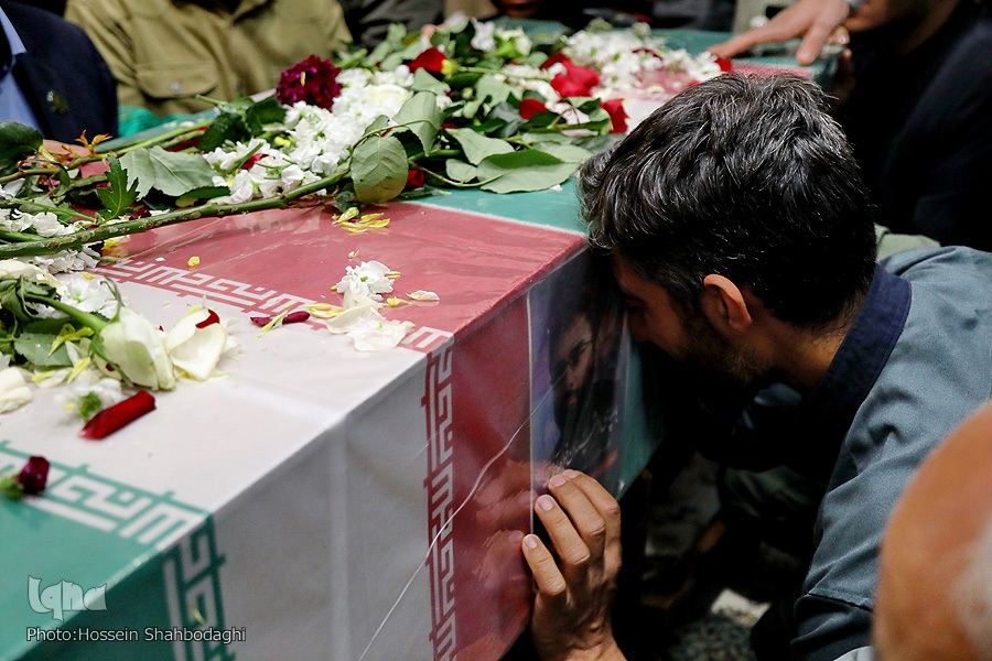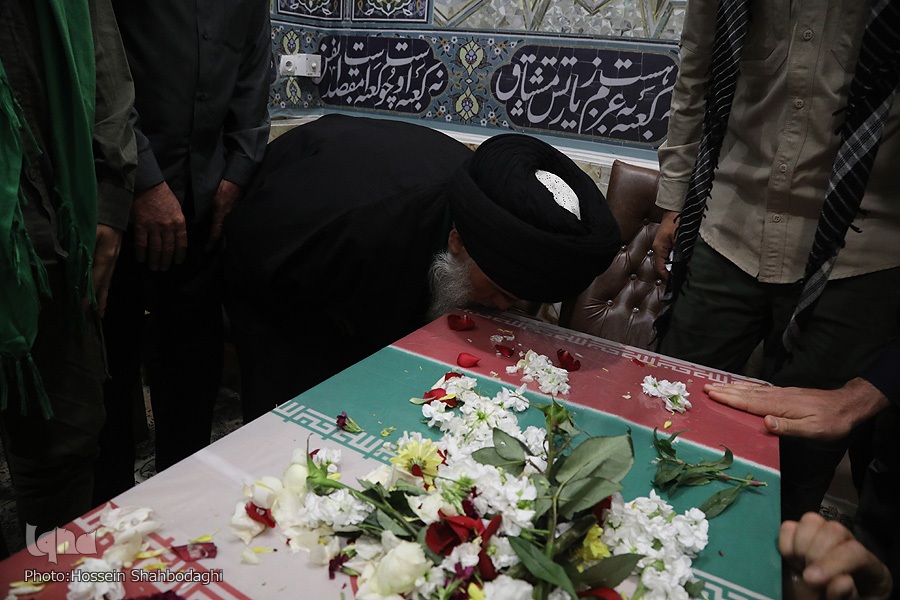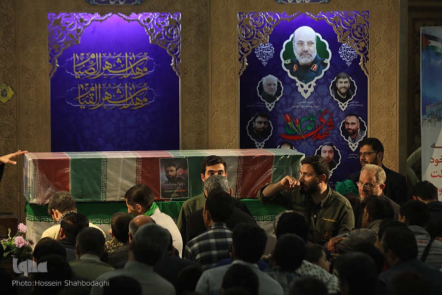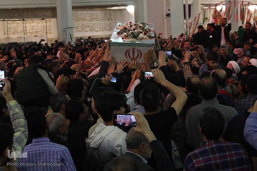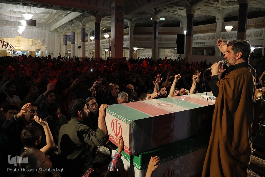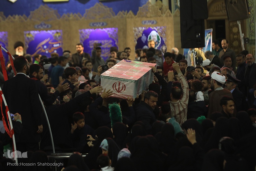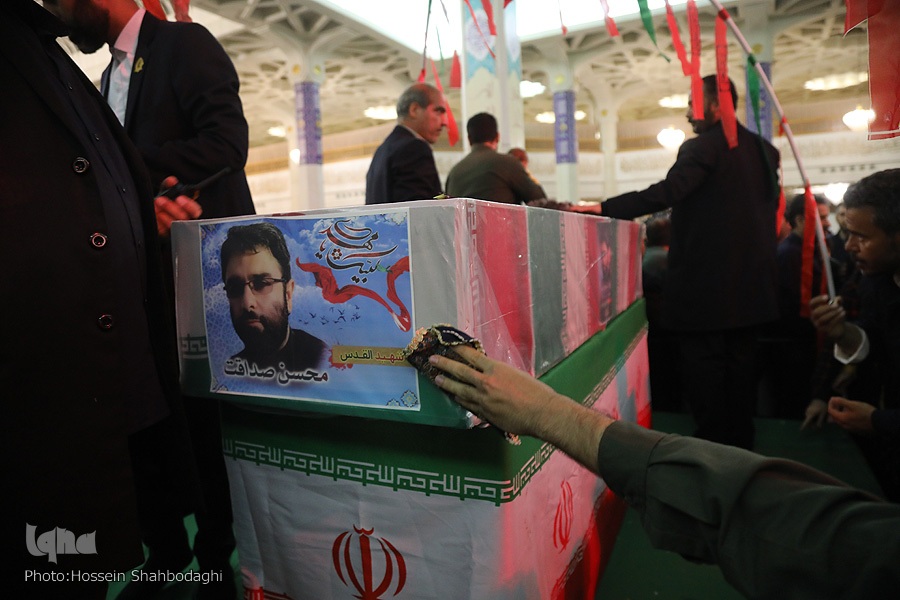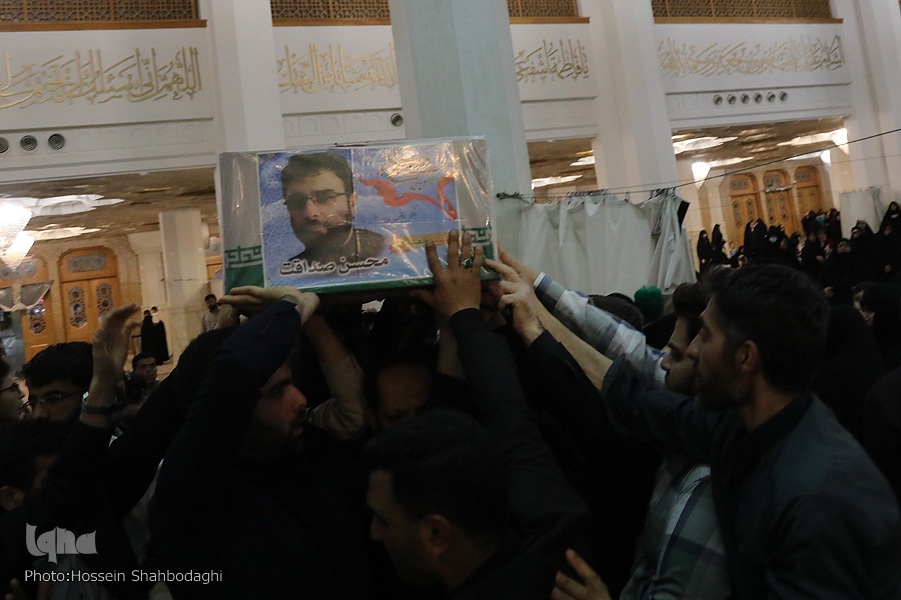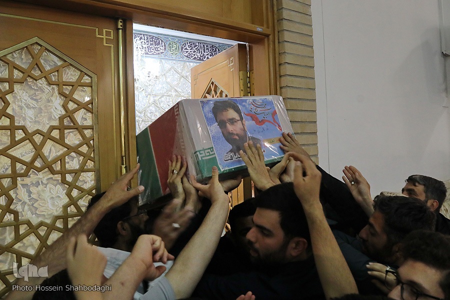 مراسم وداع با پیکر مطهر شهید محسن صداقت از شهدای قمی حمله تروریستی رژیم صهیونیستی به کنسولگری جمهوری اسلامی ایران در دمشق با حضور پرشور مردم در حرم مطهر بانوی کرامت برگزار شد.