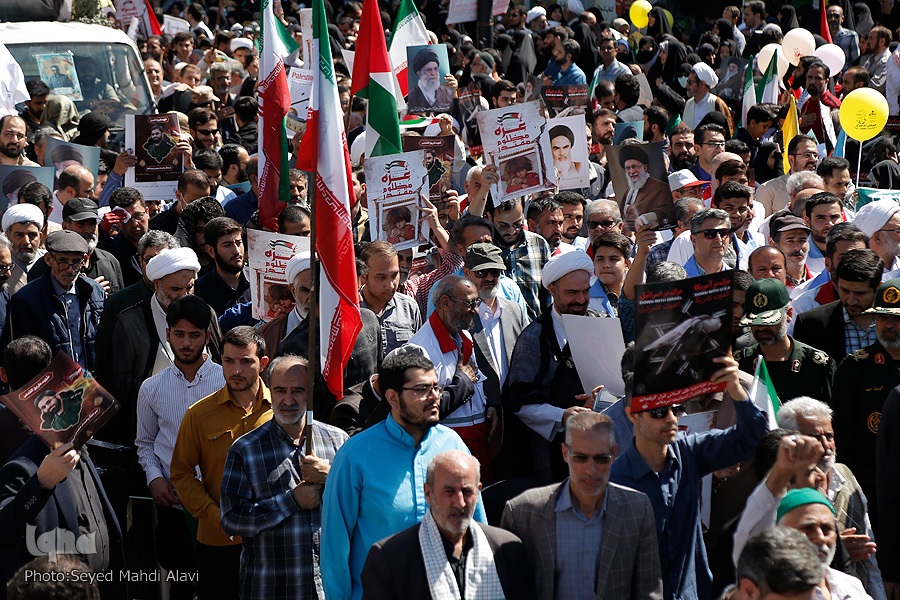 مردم قم در روز جهانی قدس از حرم حضرت معصومه(س) تا مصلی قدس راهپیمایی کرده و ضمن حمایت خود از مظلومان فلسطین، از جنایات دشمن صهیونیستی اعلام انزجار کردند.