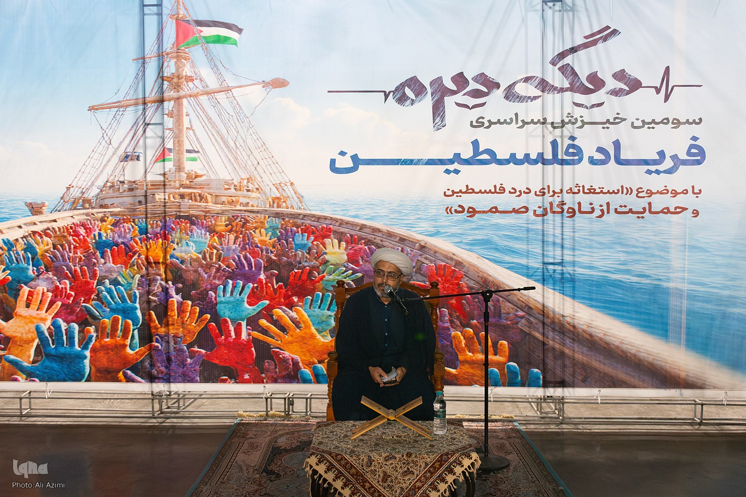 سومین خیزش سراسری «فریاد فلسطین» با موضوع استغاثه برای درد فلسطین و حمایت از ناوگان صمود، شامگاه جمعه، ۱۱ مهرماه در امامزاده شاه میرحمزه (ع) اصفهان برگزار شد.