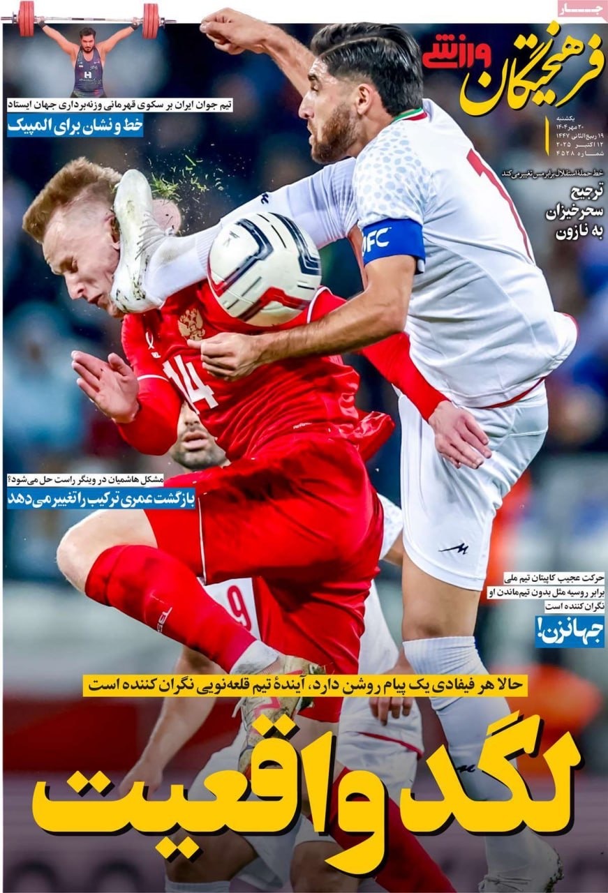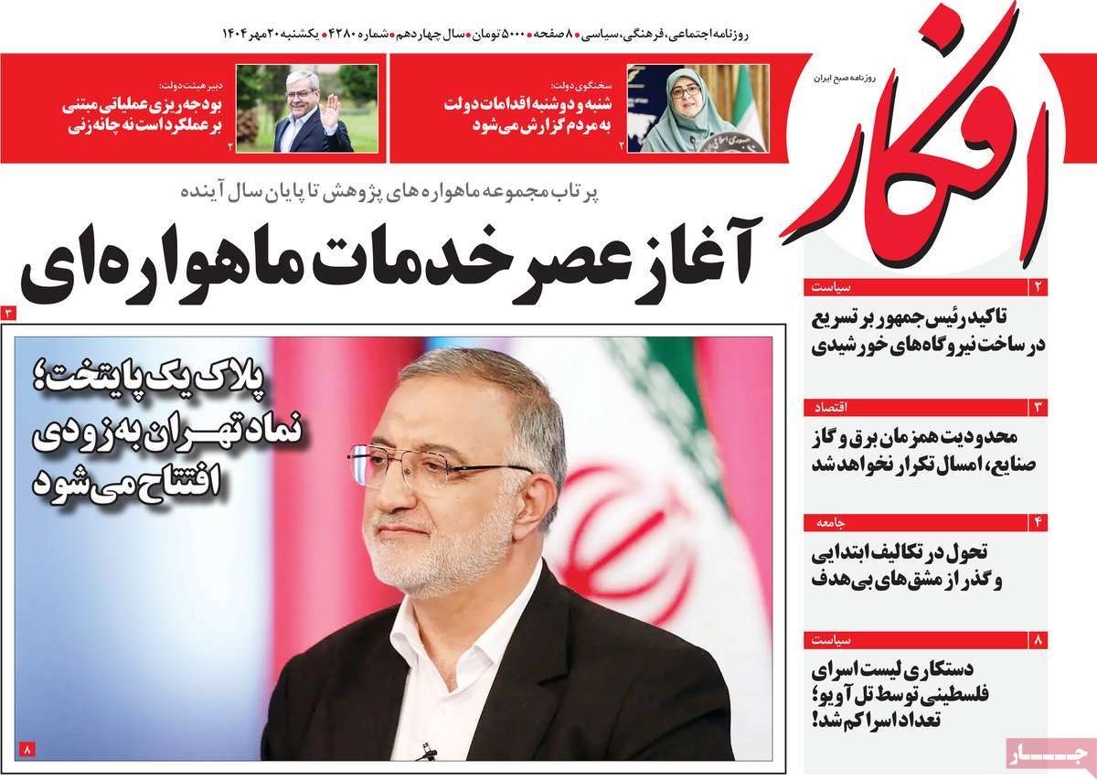صفحه نخست روزنامههای یکشنبه ۲۰ مهر ۱۴۰۴