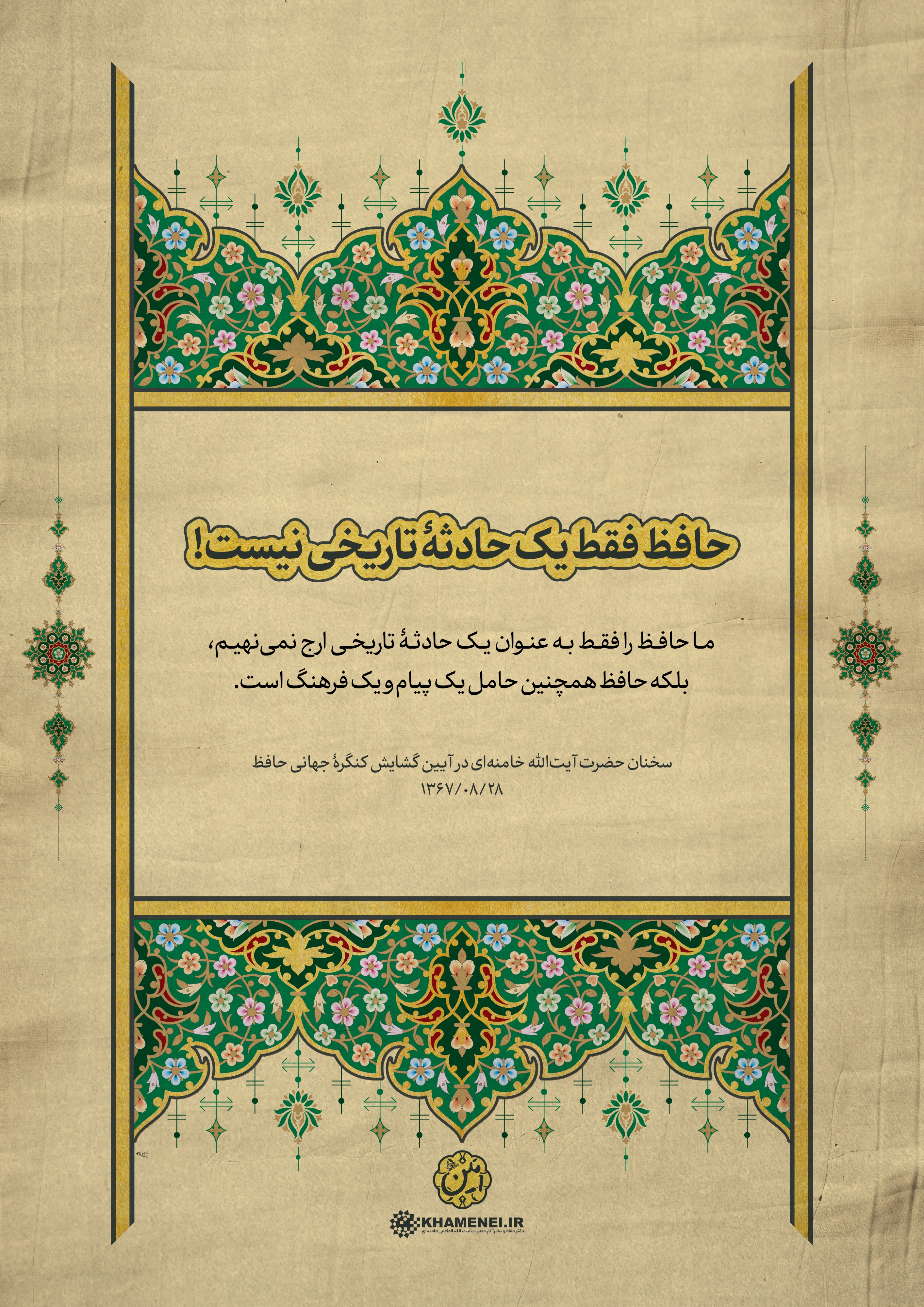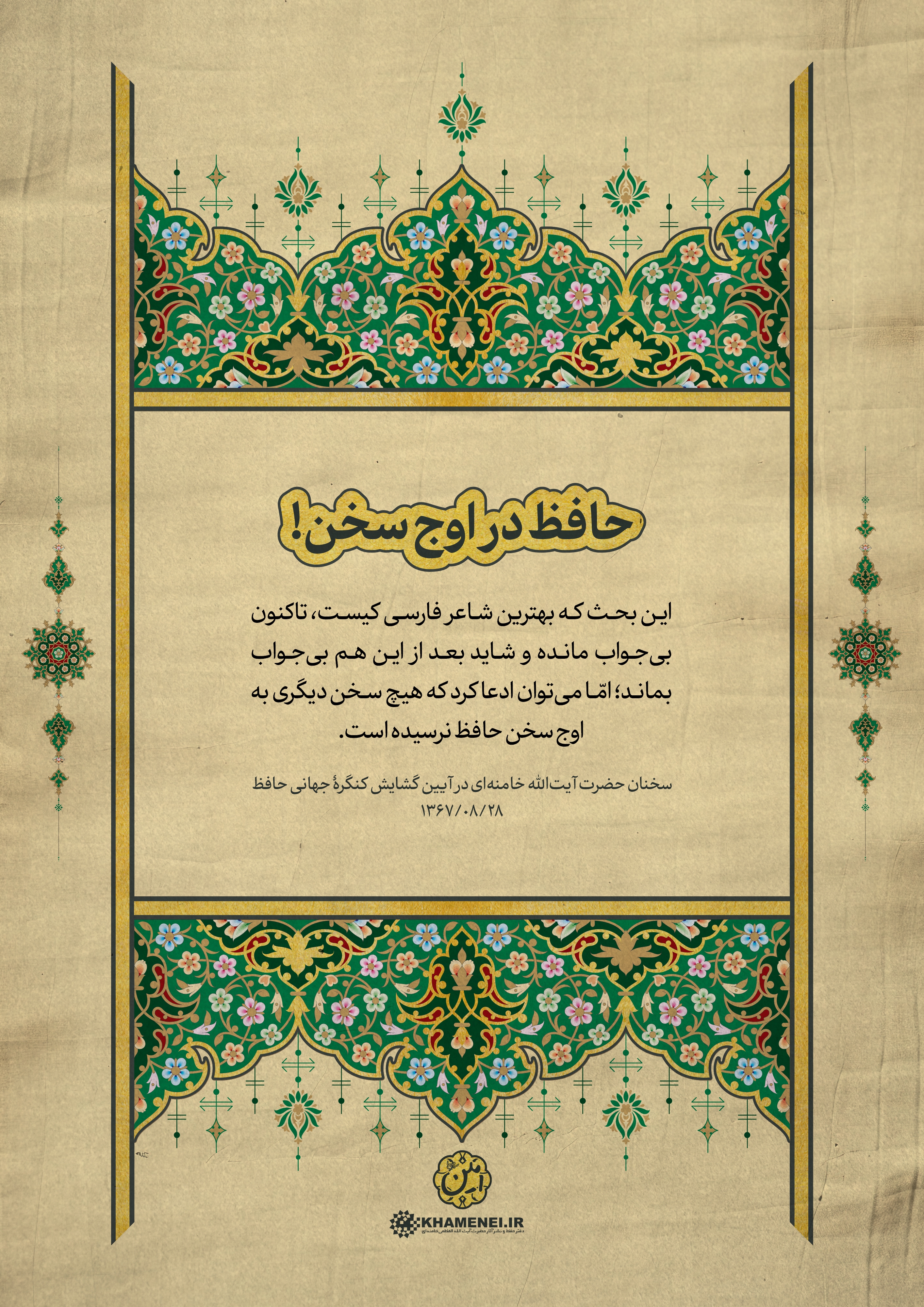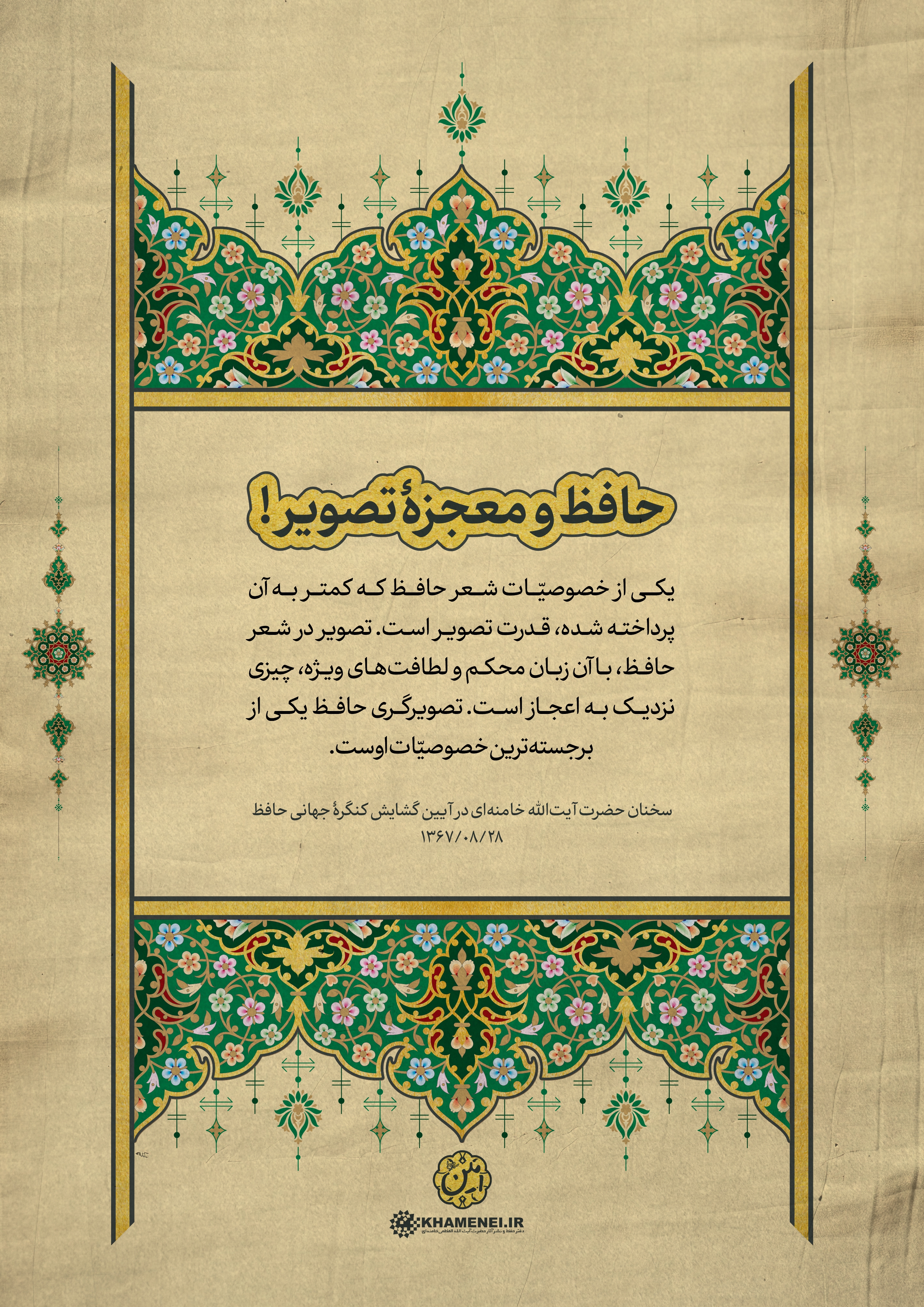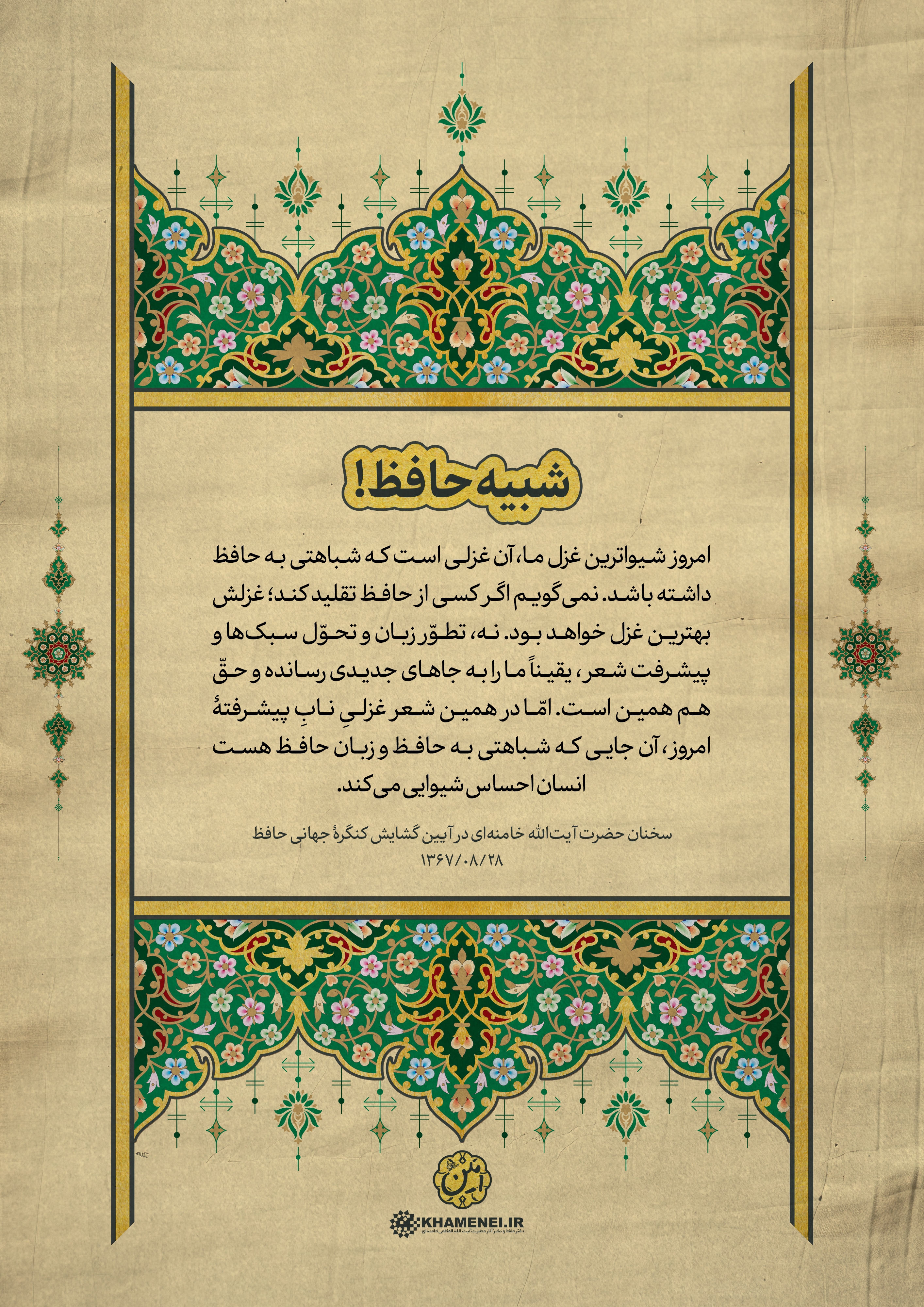 به مناسبت روز بزرگداشت حافظ، شاعر پرآوازه ایرانی، مجموعه فتوتیترهای شعر و ادب فارسی به روایت رهبر معظم انقلاب منتشر شد. این مجموعه سخنان رهبر معظم انقلاب اسلامی در آیین گشایش کنگره جهانی حافظ در سال ۱۳۶۷ است که در قالب فتوتیتر تولید شده است.