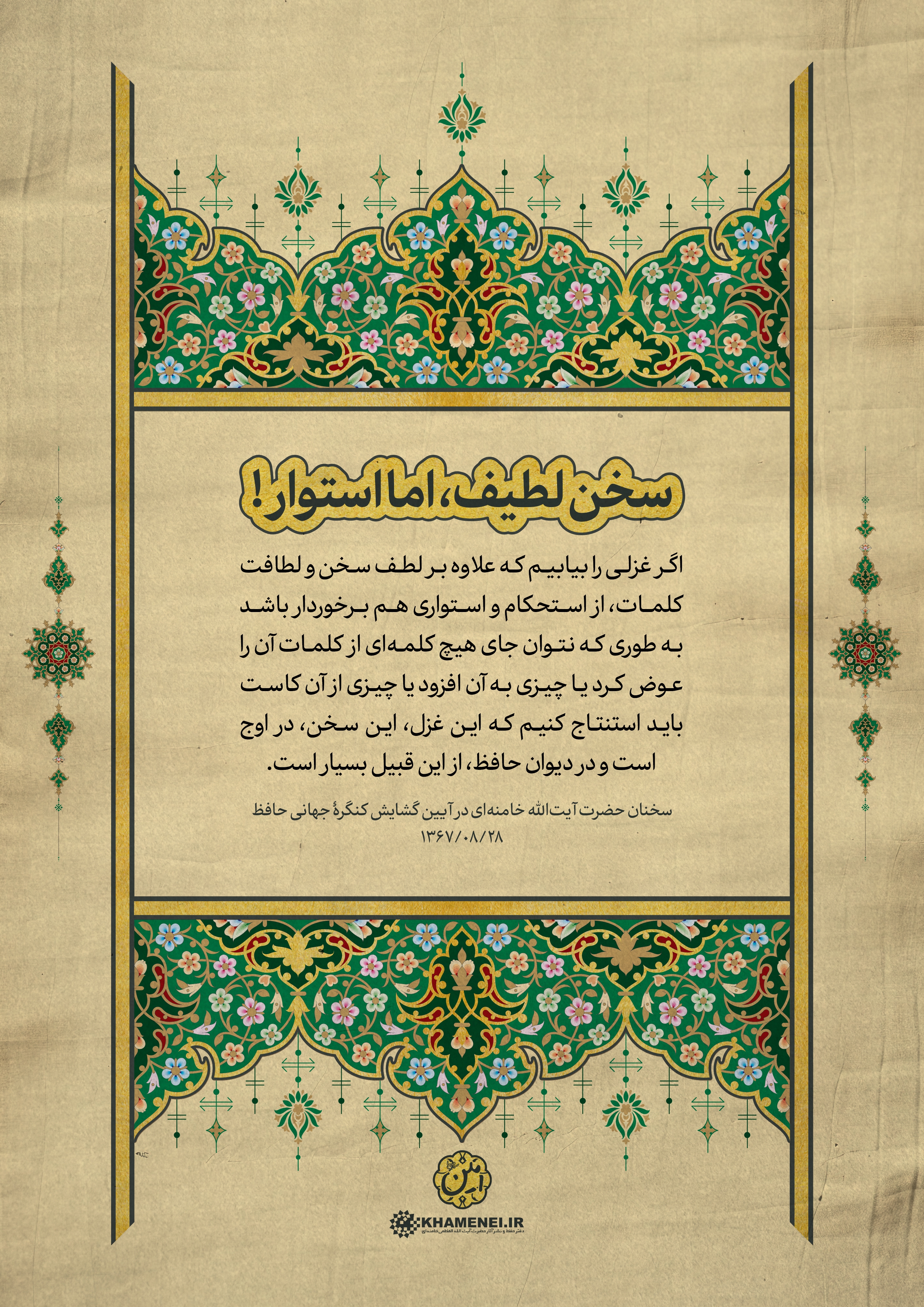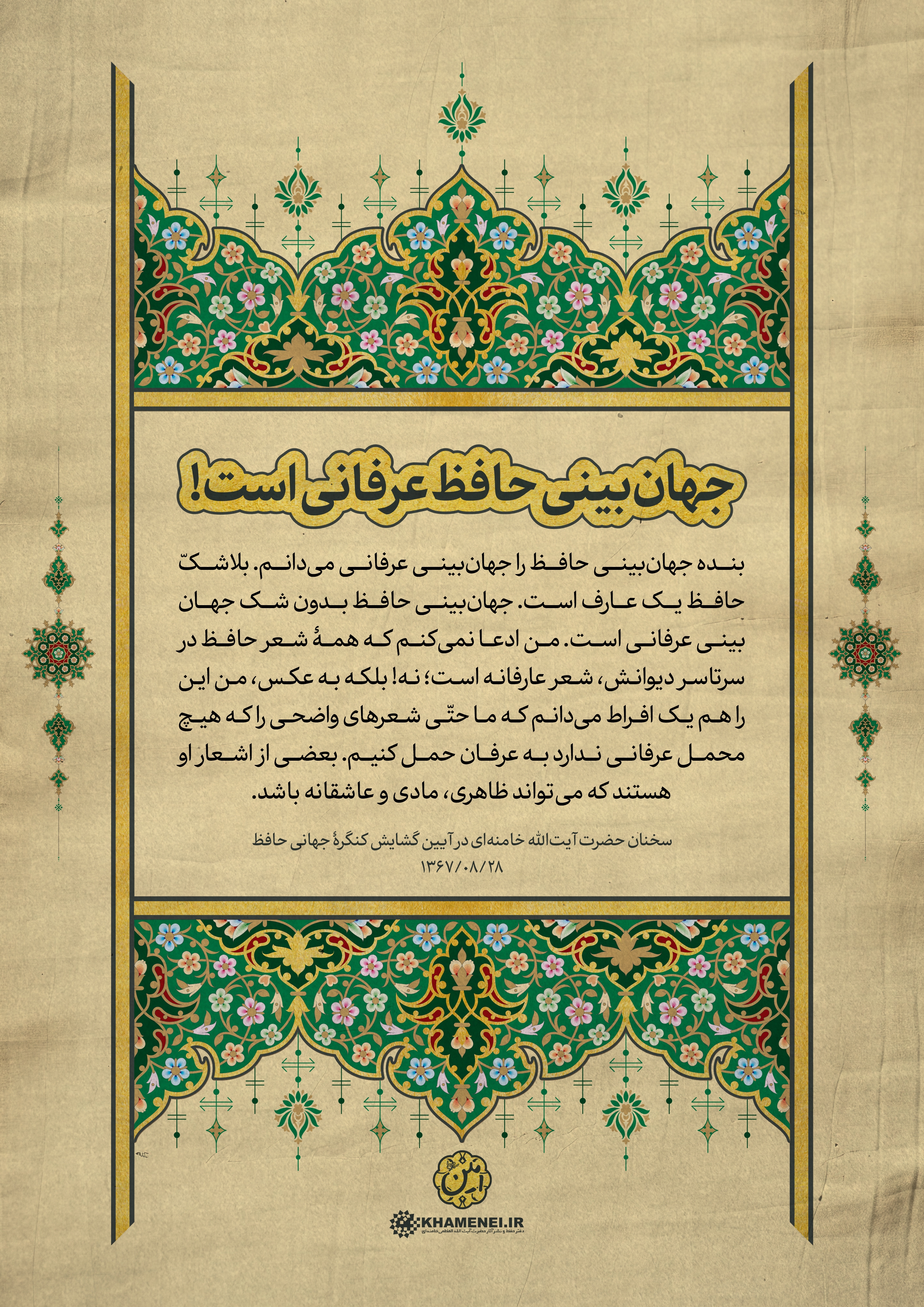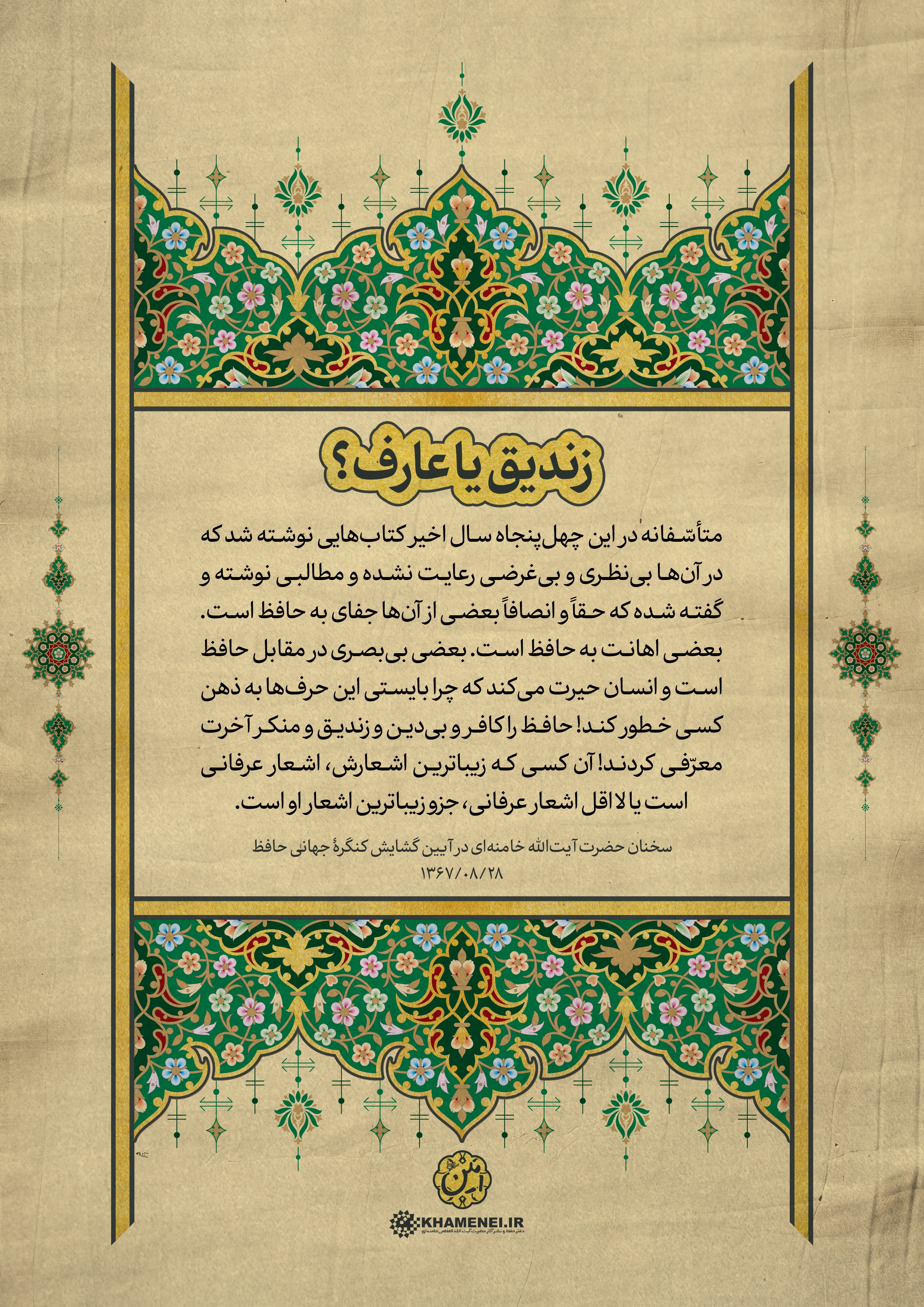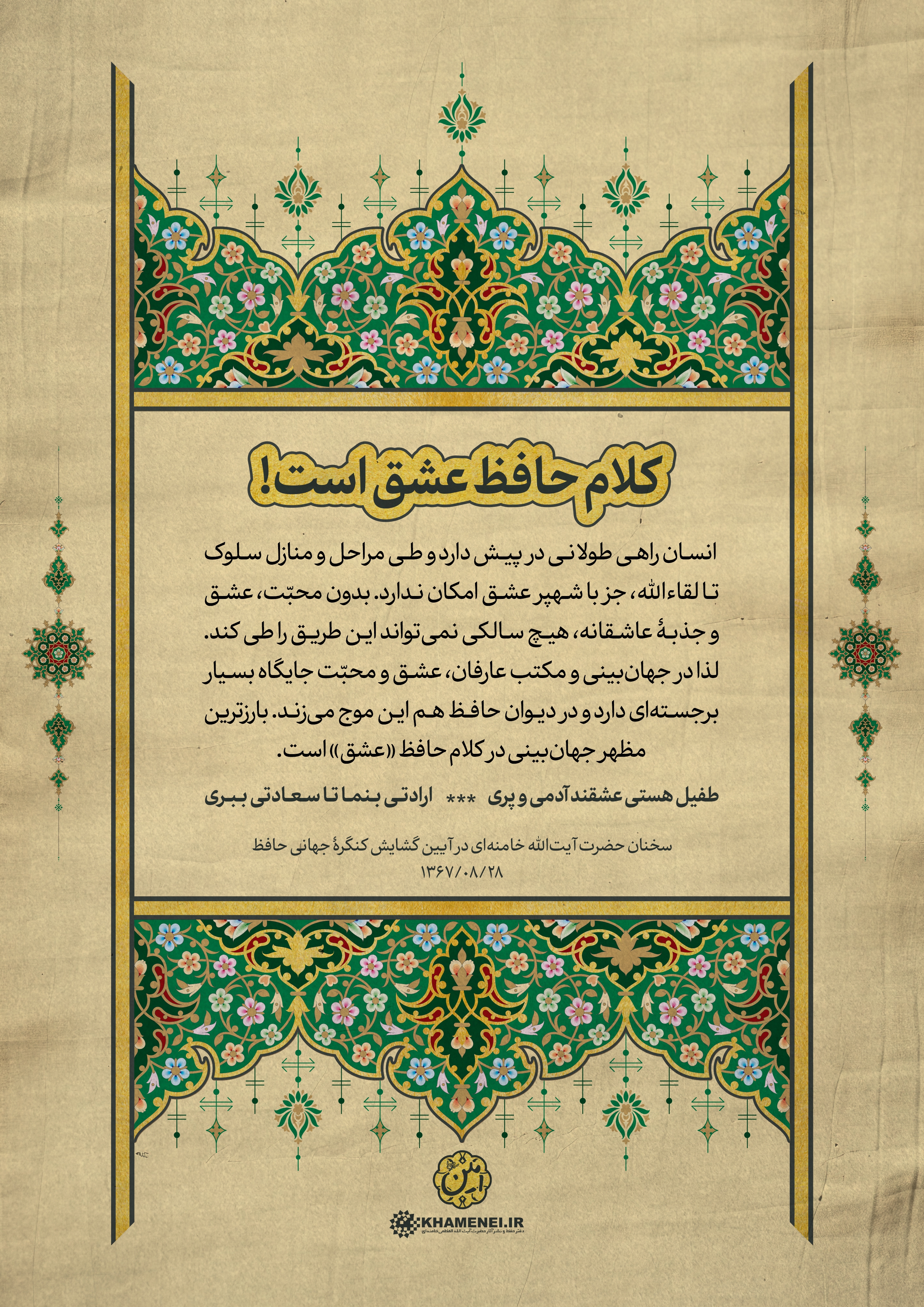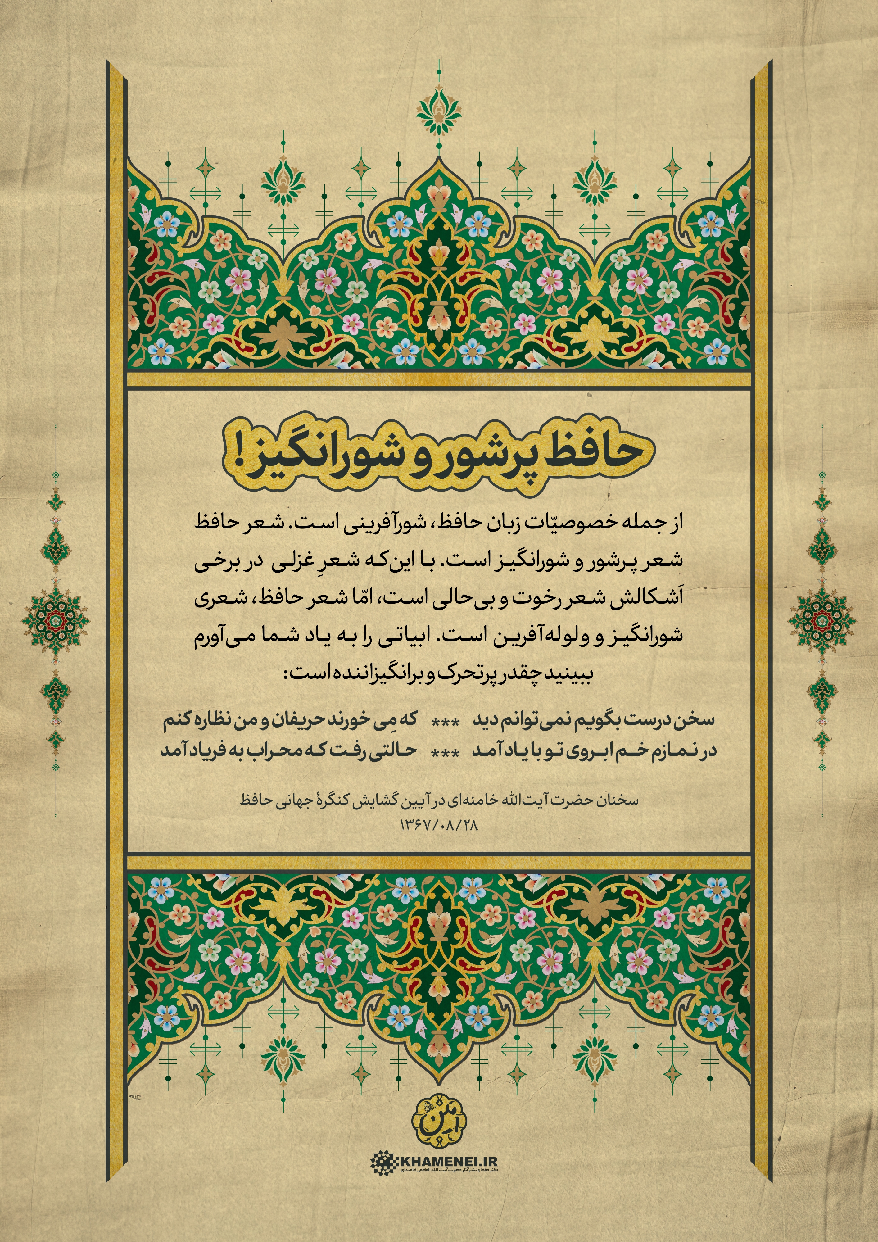 به مناسبت روز بزرگداشت حافظ، شاعر پرآوازه ایرانی، مجموعه فتوتیترهای شعر و ادب فارسی به روایت رهبر معظم انقلاب منتشر شد. این مجموعه سخنان رهبر معظم انقلاب اسلامی در آیین گشایش کنگره جهانی حافظ در سال ۱۳۶۷ است که در قالب فتوتیتر تولید شده است.
