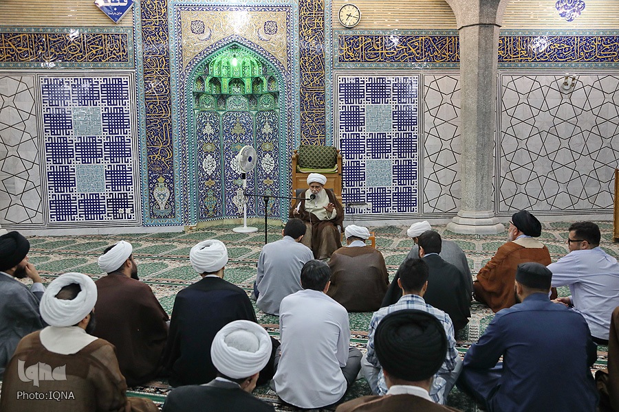 درس اخلاق آیت الله کریمی جهرمی با موضوع بایسته های حوزه انقلابی در مدرسه علمیه فیضیه برگزار شد.