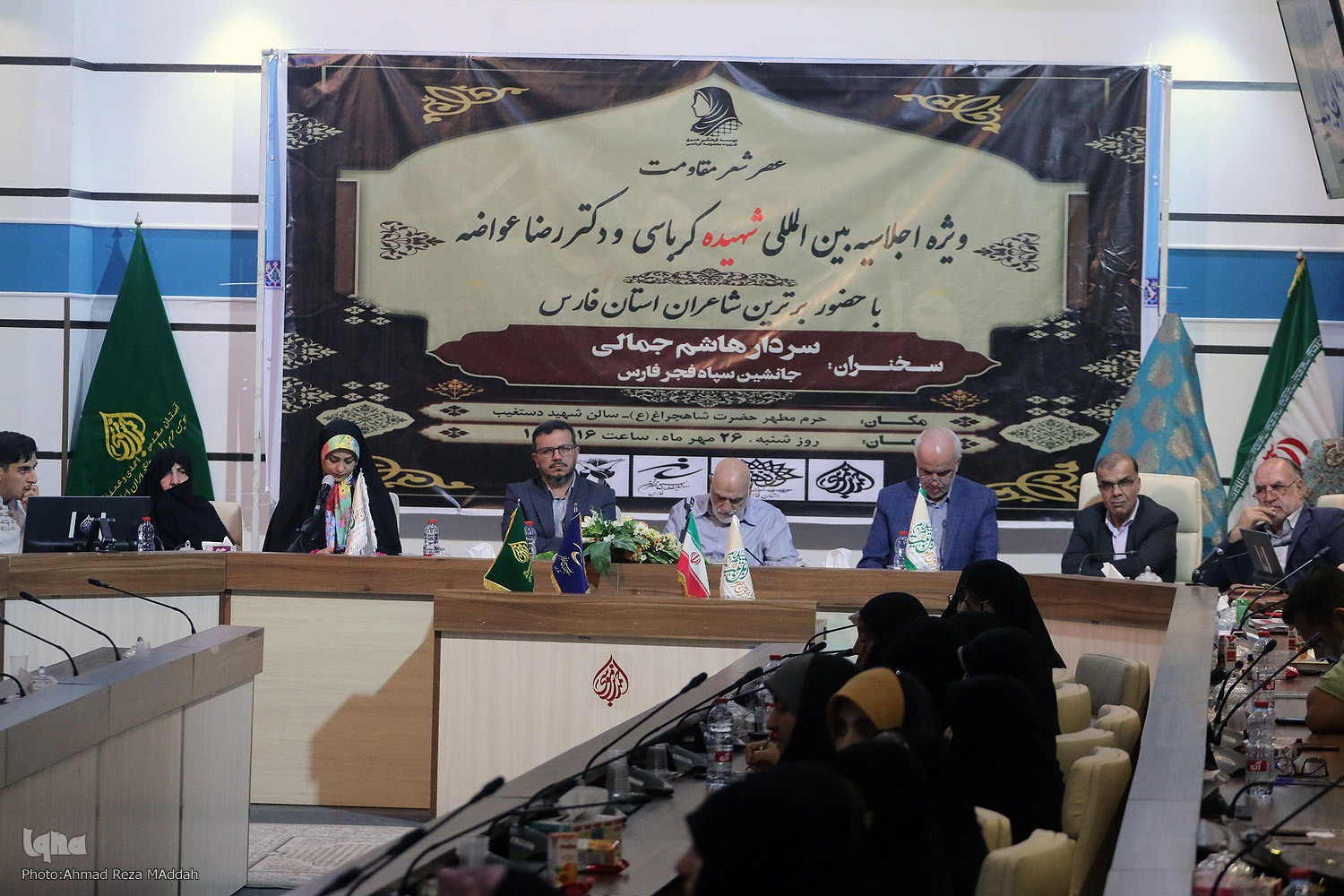 عصر شعر مقاومت ویژه اجلاسیه بین المللی شهیده کرباسی و شهید رضا عواضه در حرم مطهر حضرت شاهچراغ(ع) برگزار شد.
