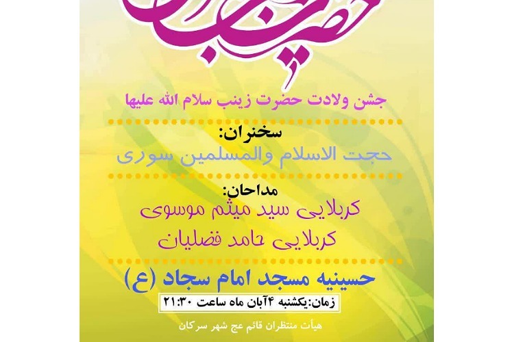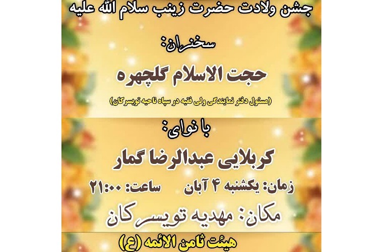 مراسم گرامیداشت سالروز ولادت حضرت زینب(س) در نقاط مختلف شهرستان تویسرکان برگزار میشود.