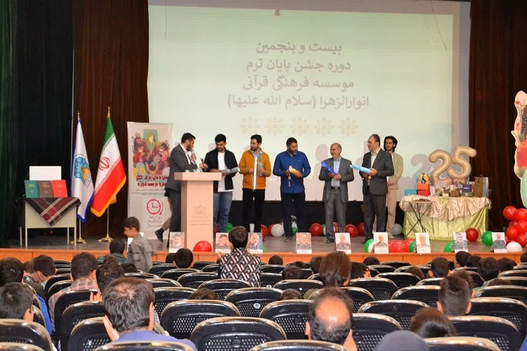جشن بیست و پنجمین دوره پایان ترم تعلیم و تربیت موسسه قرآن وعترت انوارالزهرا(س) و جشن ربع قرن جهاد تربیت اُمیدان انقلاب اسلامی ویژه پسران در کانون مهدیه و دختران در تالار قرآن برگزار شد.