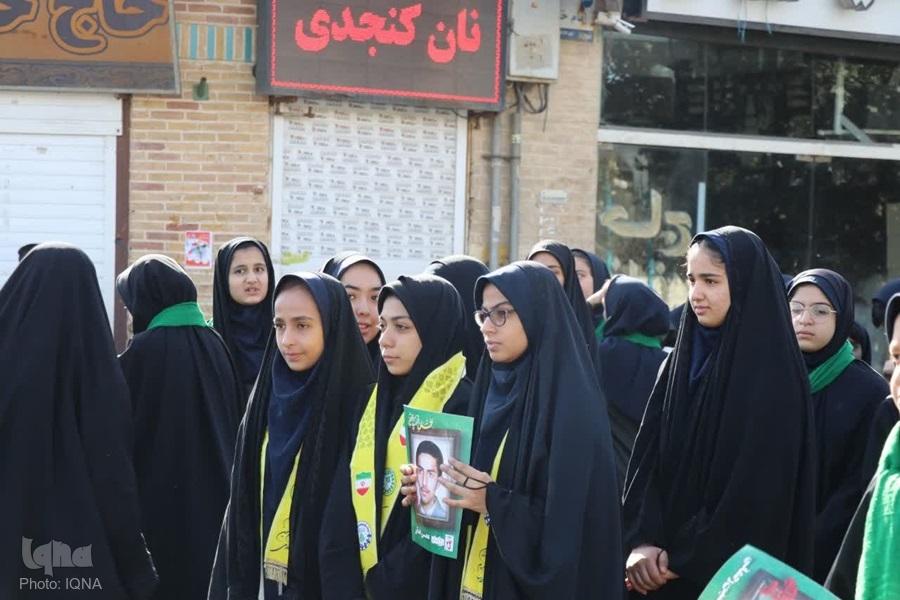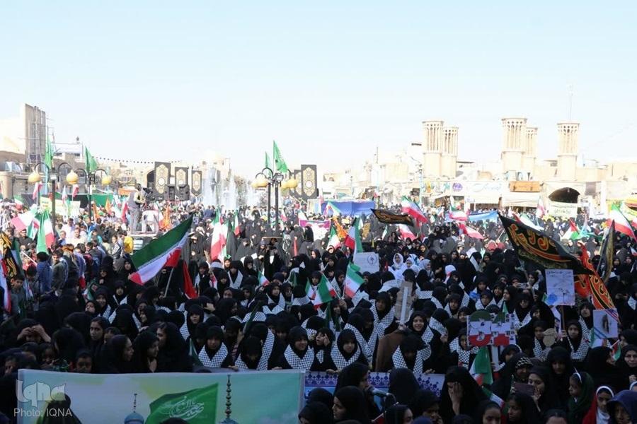 میدان امیرچقماق یزد صحنه حضور پرشور دانشآموزان، فرهنگیان، خانواده شهدا، مسئولان و مردم مؤمن و انقلابی بود که این حضور پرشور جلوهای از همبستگی ملت ایران و پایبندی به آرمانهای امام خمینی(ره) و رهبر معظم انقلاب اسلامی را به نمایش گذاشت.