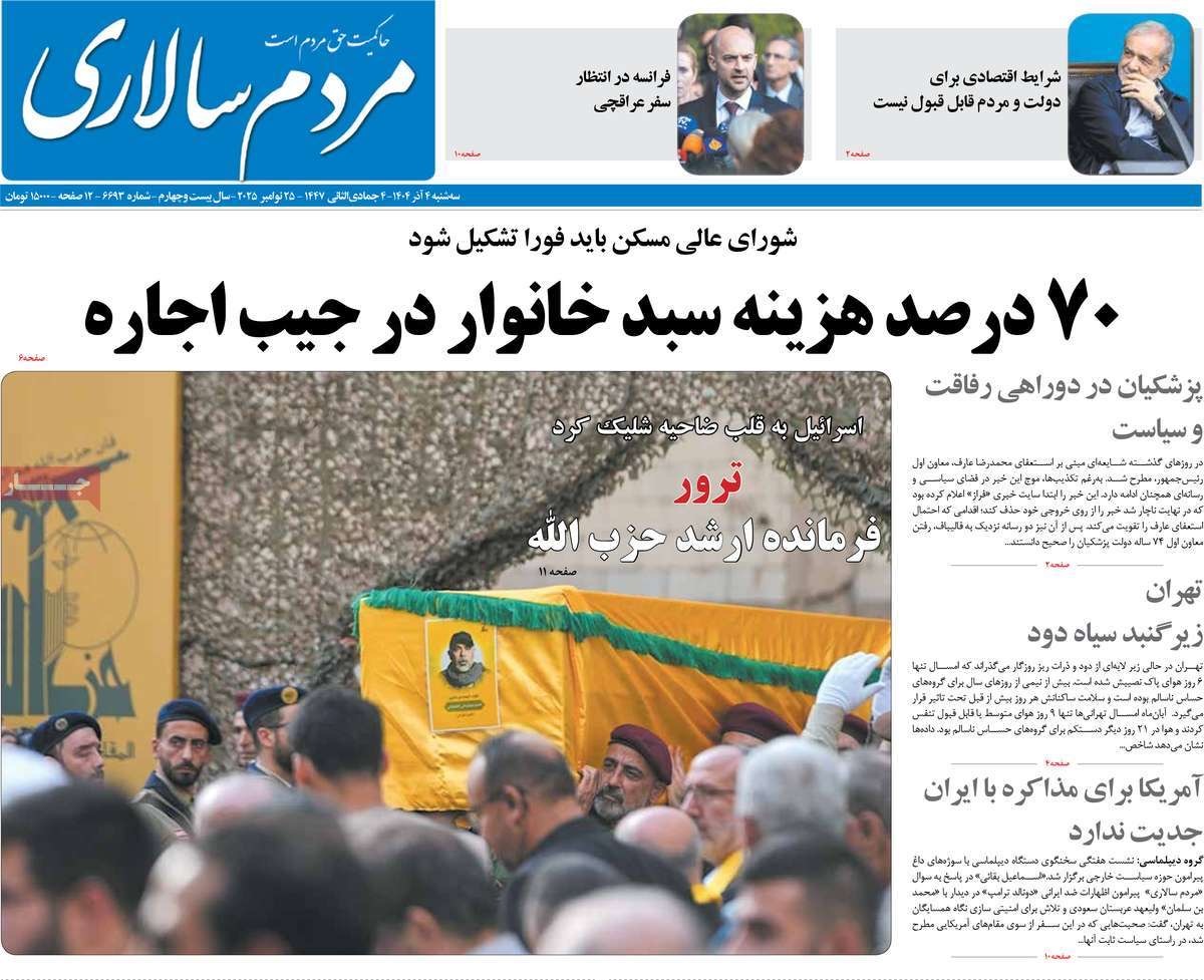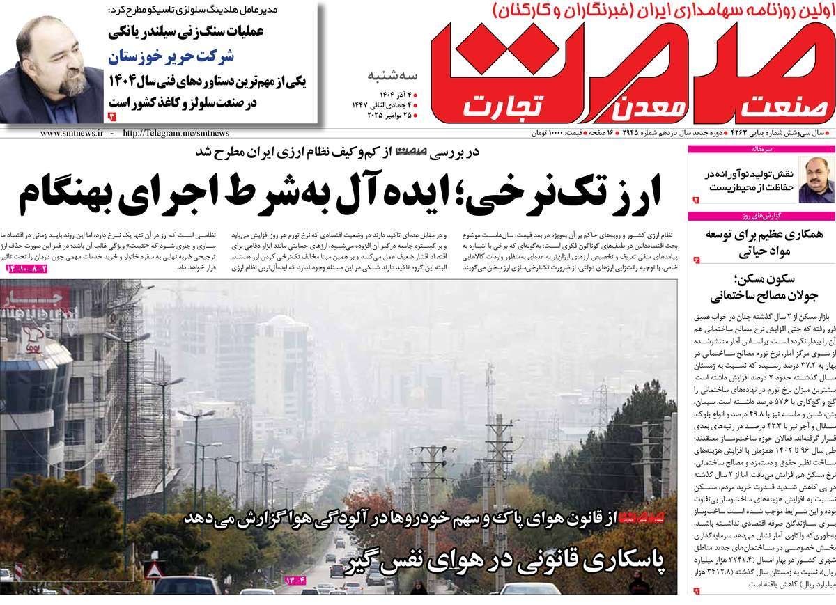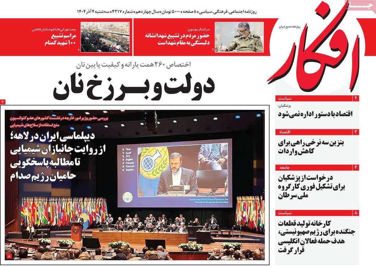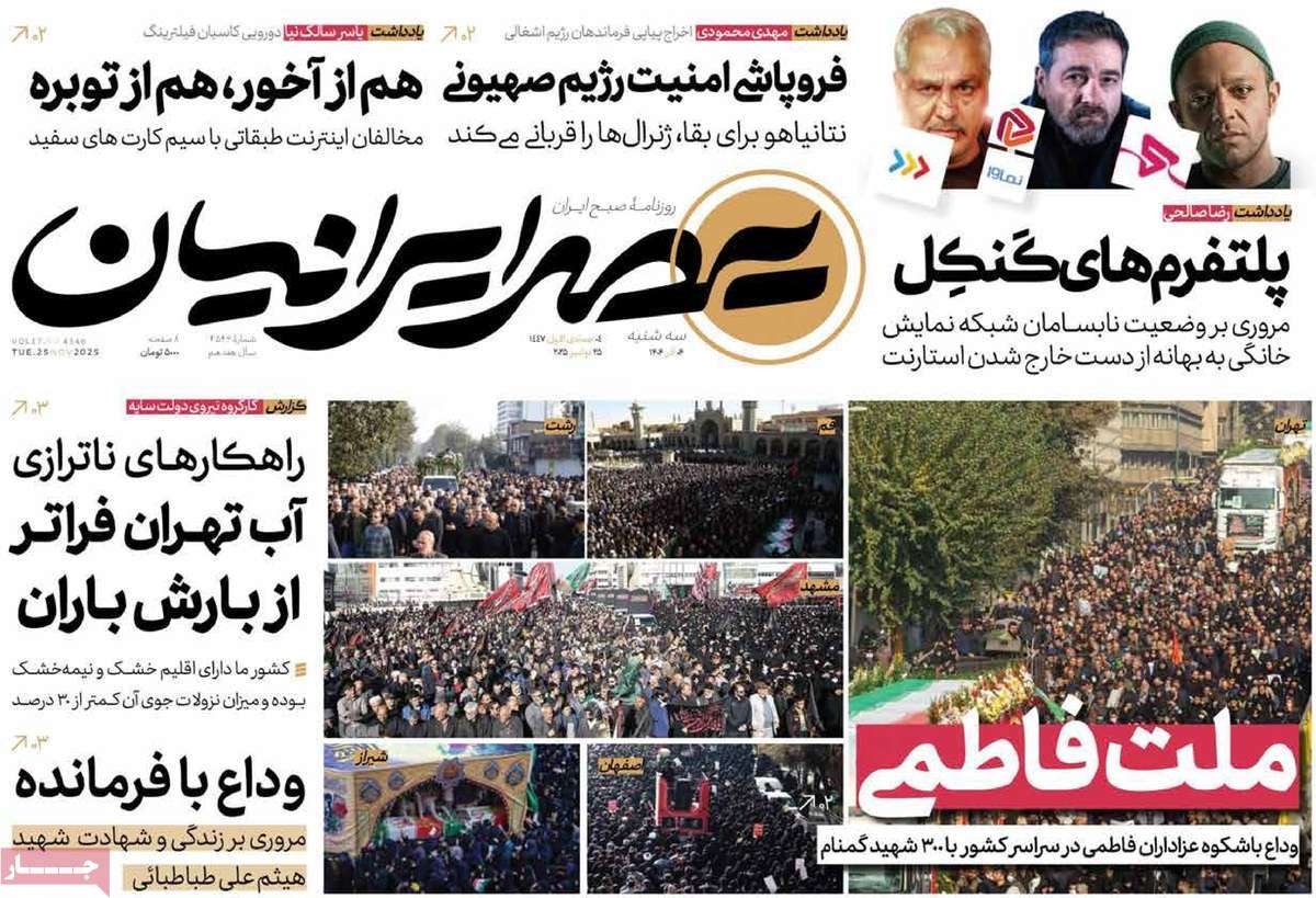 صفحه نخست روزنامههای سهشنبه ۴ آذر ۱۴۰۴