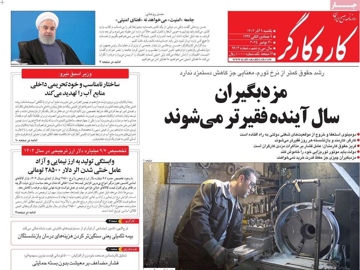 صفحه نخست روزنامههای یکشنبه ۹ آذر ۱۴۰۴