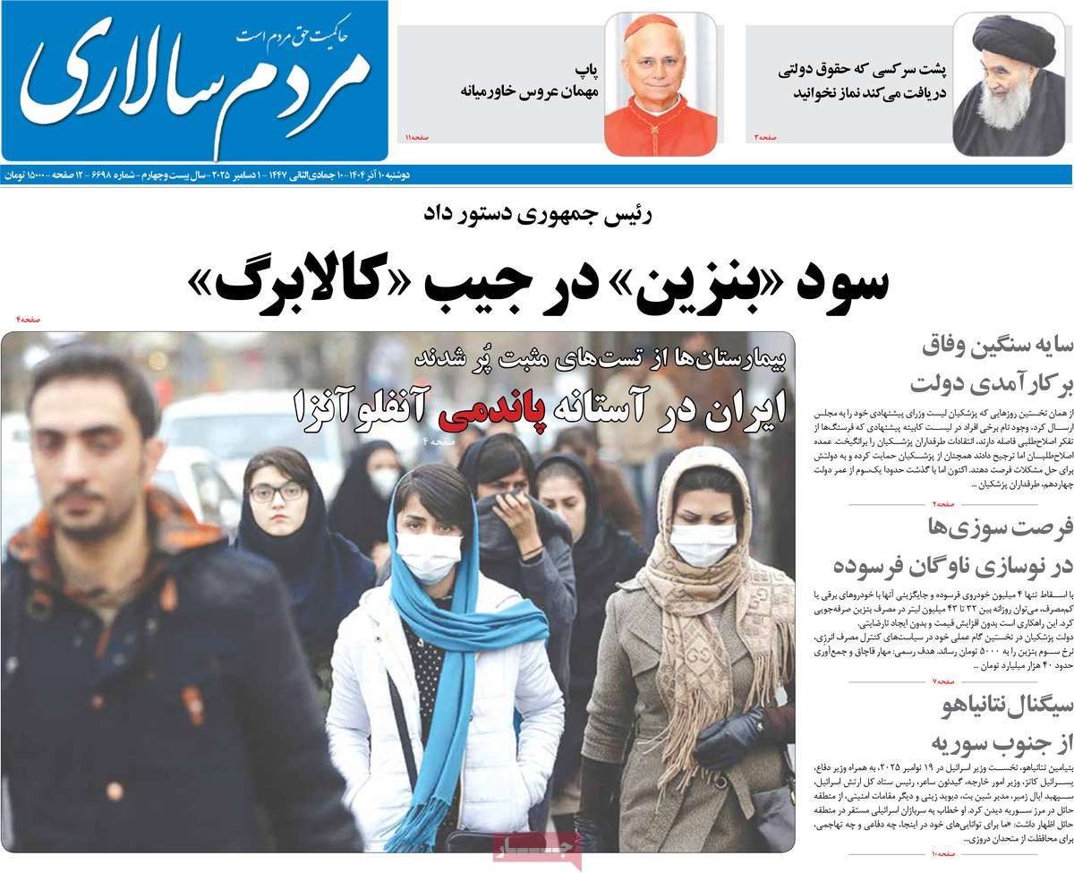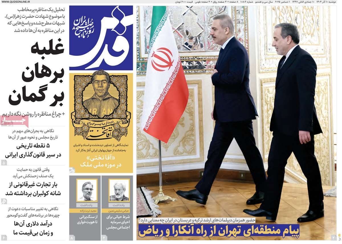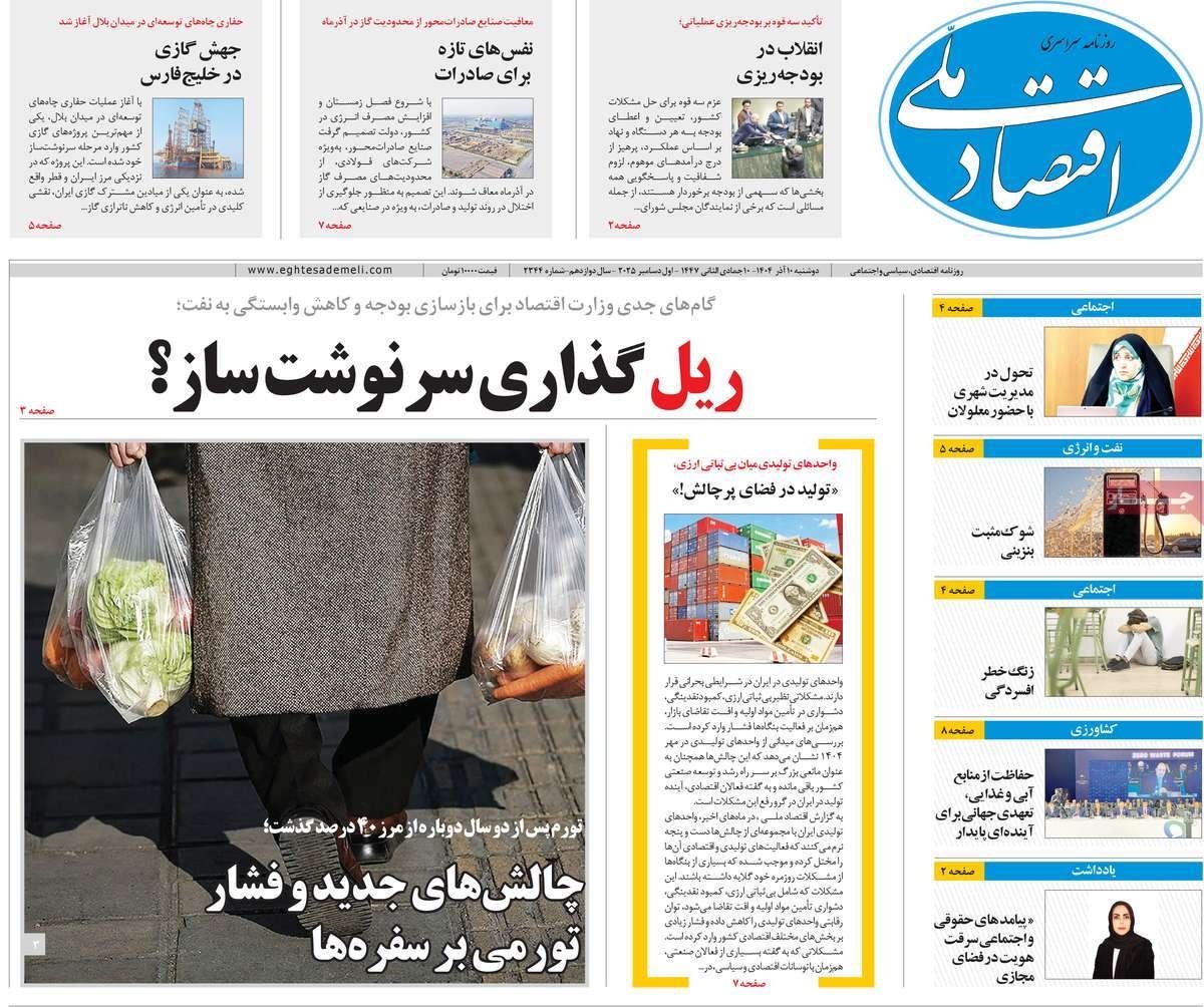 صفحه نخست روزنامههای دوشنبه ۱۰ آذر ۱۴۰۴