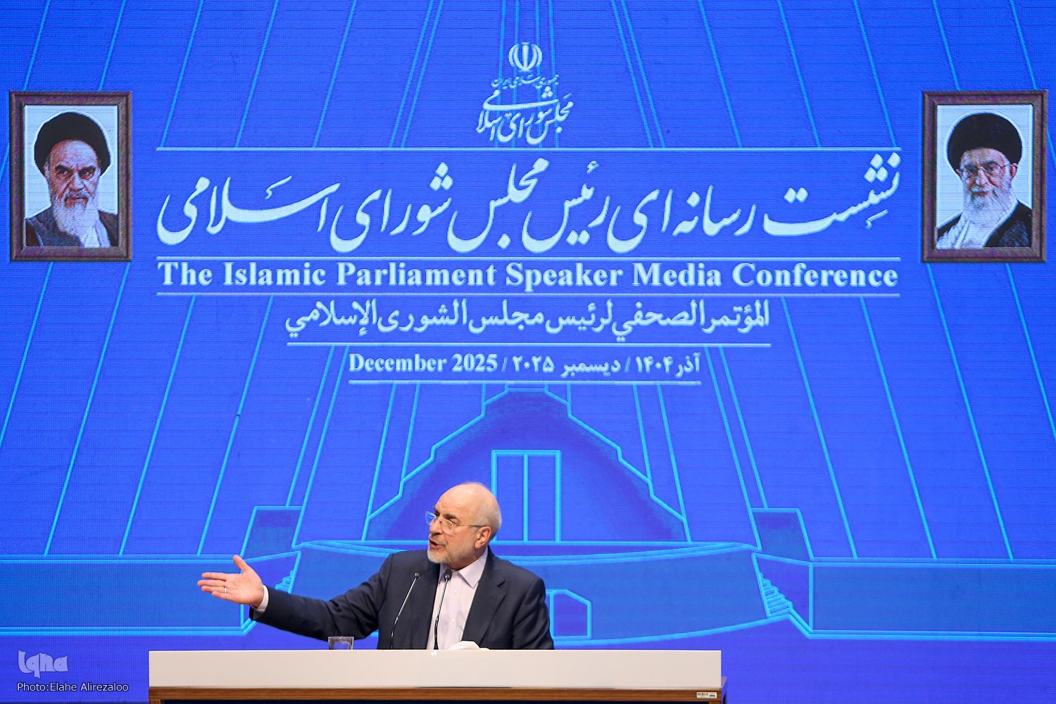 دومین نشست خبری محمدباقر قالیباف، رئیس مجلس شورای اسلامی عصر امروز ۱۱ آذر ۱۴۰۴ در ساختمان شیخ فضلالله نوری مجلس برگزار شد.