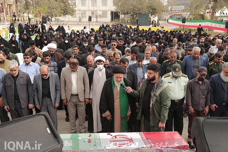 مراسم تشییع و تدفین پیکر مطهر شهید گمنام دوران دفاع مقدس، امروز ۱۳ آذرماه در پردیس شهید بهشتی دانشگاه فرهنگیان بندرعباس با حضور مردم، دانشجویان و مسئولین برگزار شد.