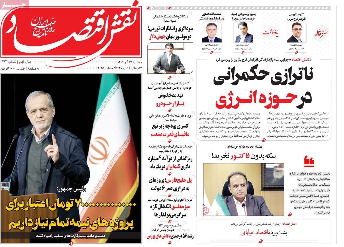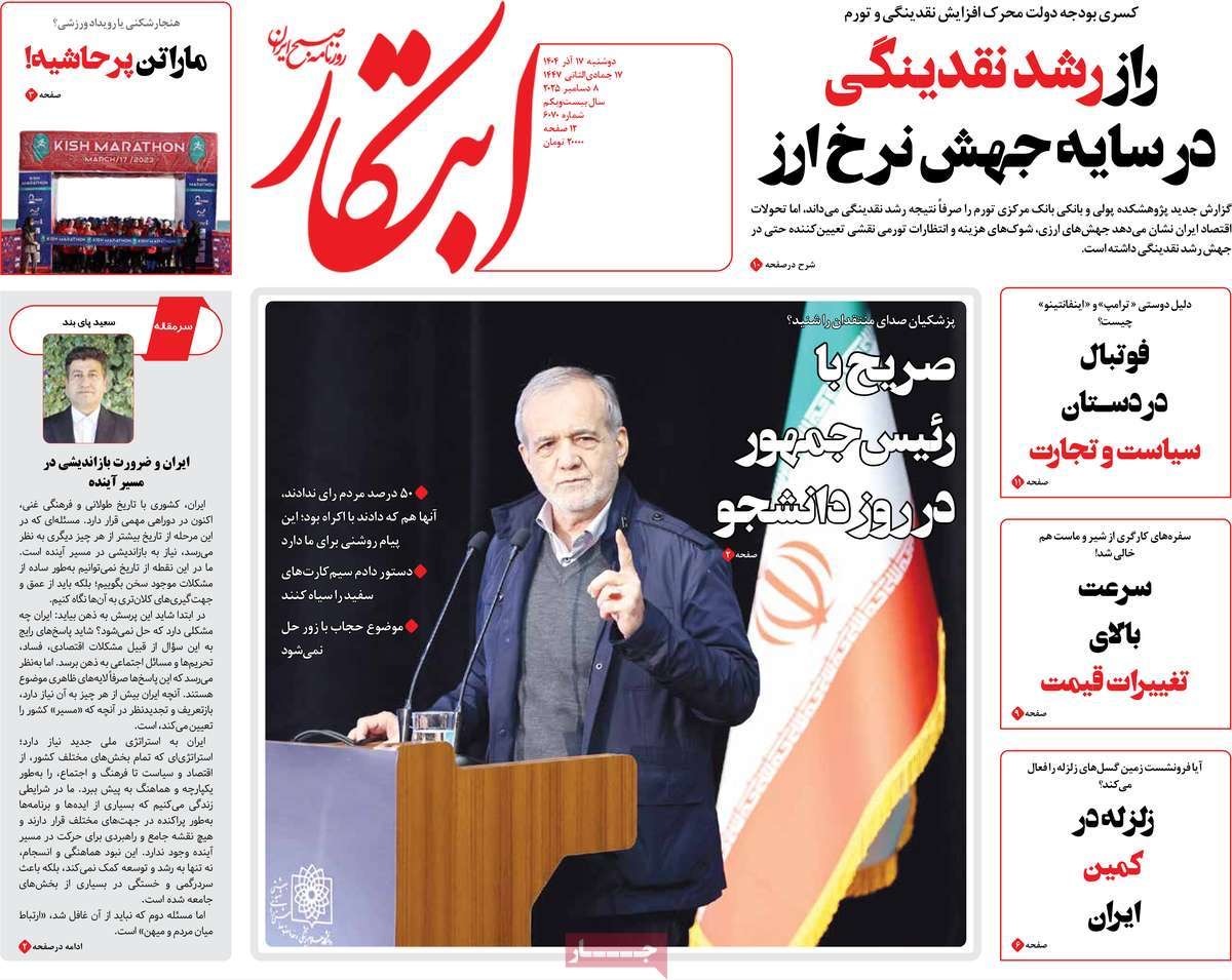 صفحه نخست روزنامههای دوشنبه ۱۷ آذر ۱۴۰۴