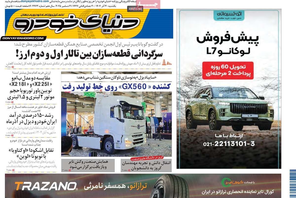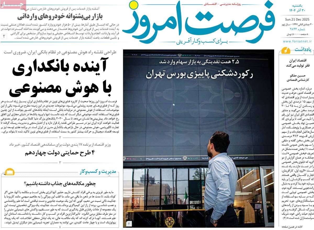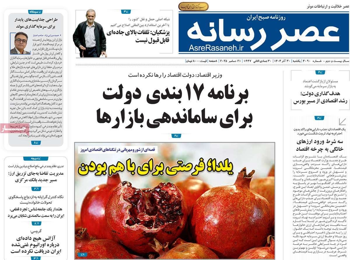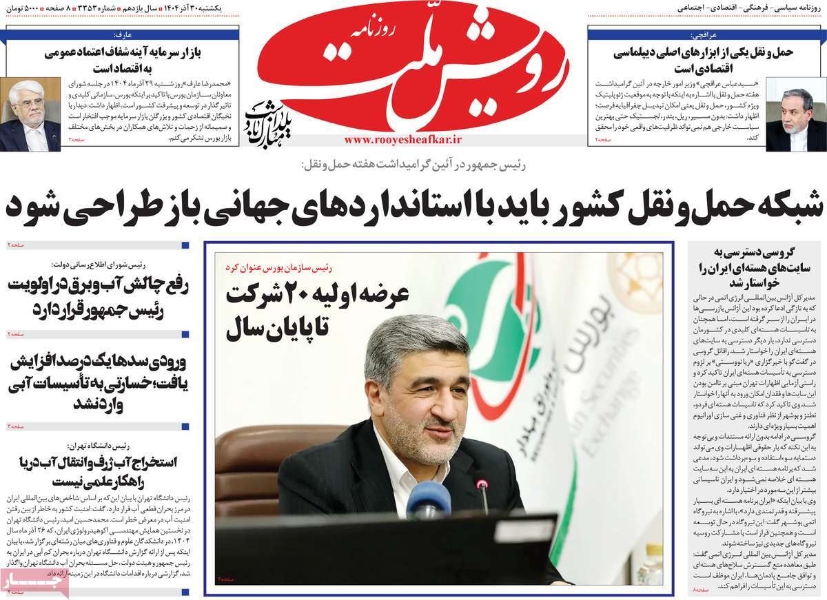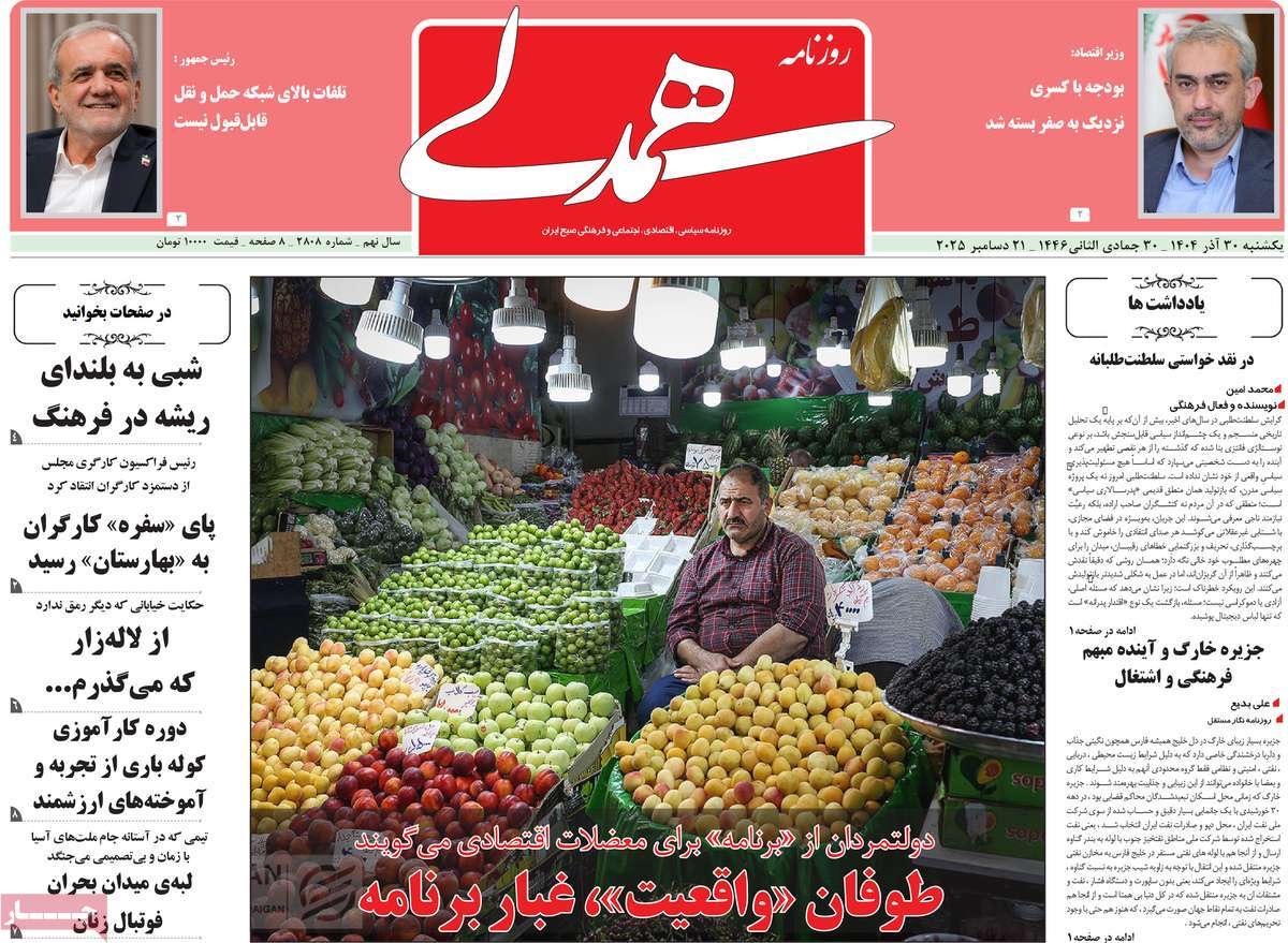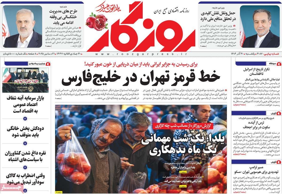 صفحه نخست روزنامههای یکشنبه ۳۰ آذر ۱۴۰۴