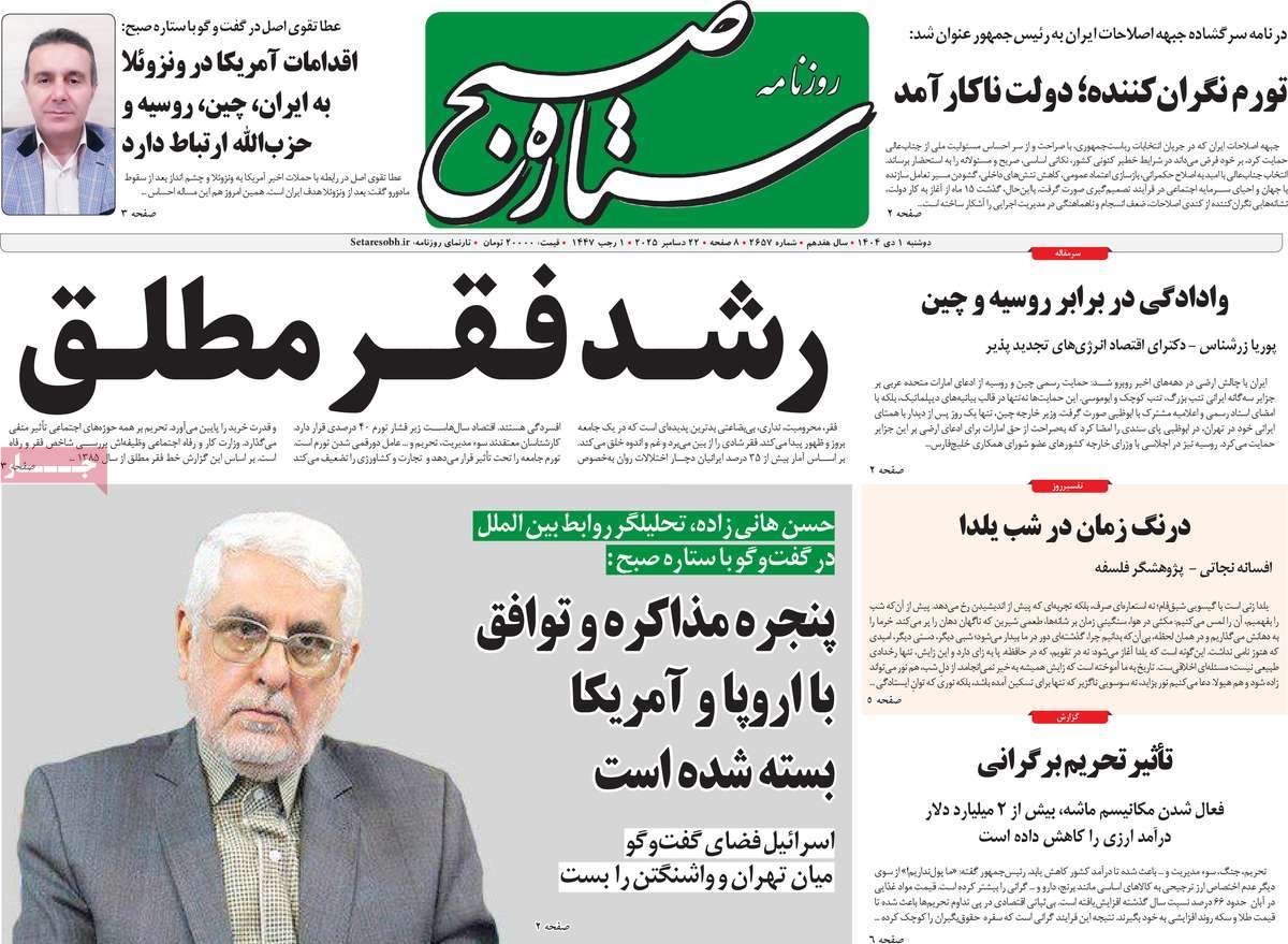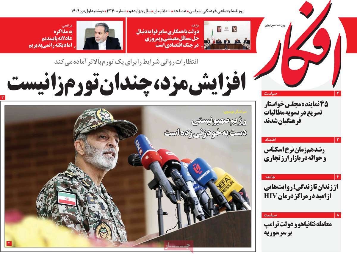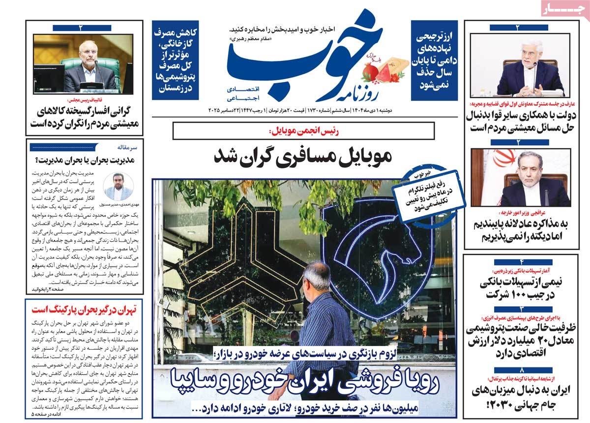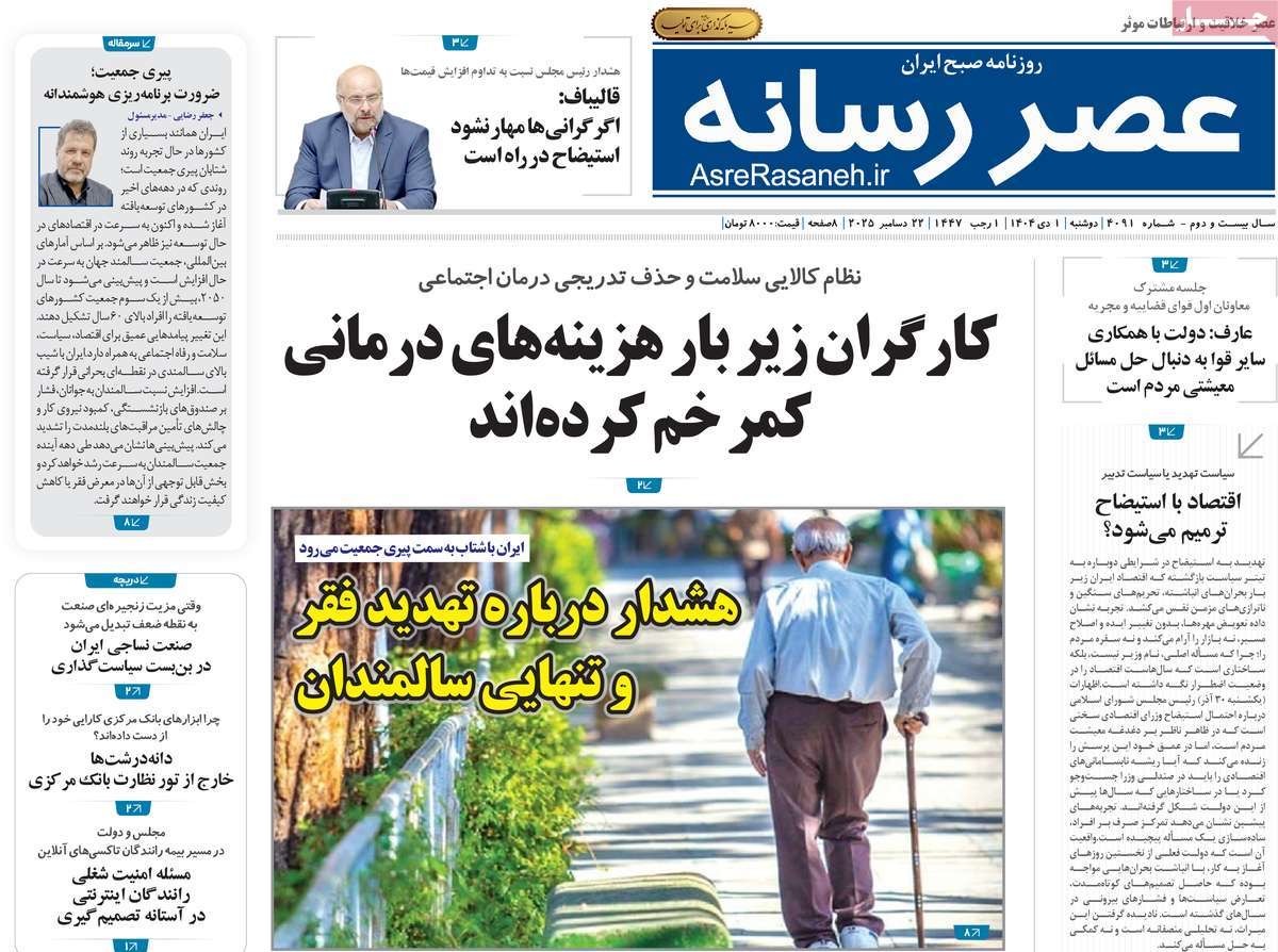 صفحه نخست روزنامههای دوشنبه ۱ دی ۱۴۰۴