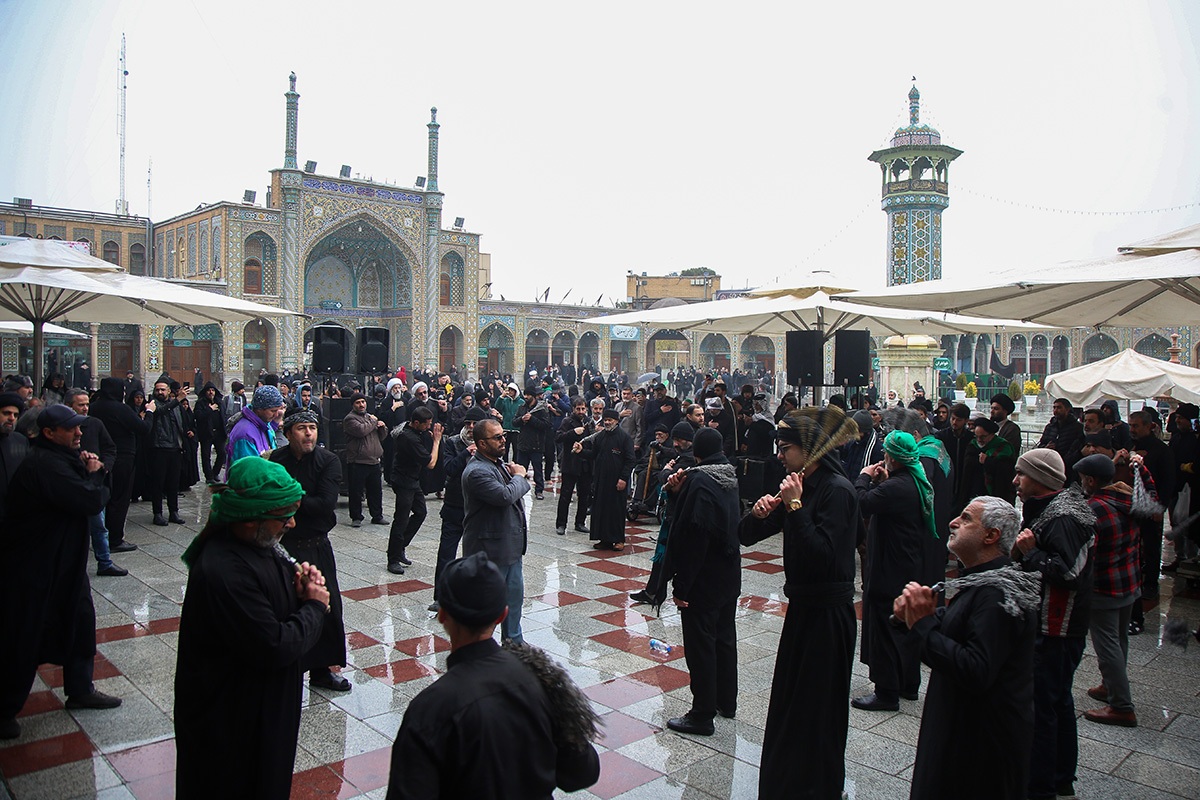 دسته های عزاداری در سالروز شهادت امام هادی(ع) با حضور در حرم مطهر حضرت فاطمه معصومه(س) در زیر قطره‌های باران در سوگ امام دهم اشک ماتم ریخته و عزاداری کردند.