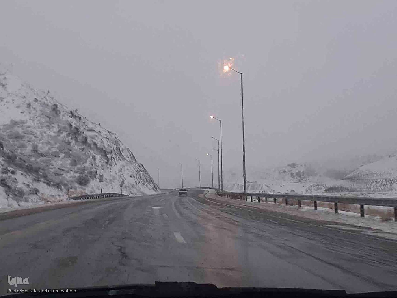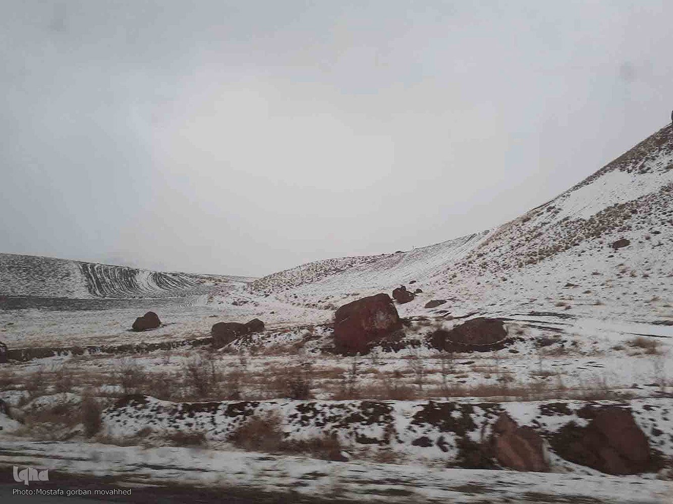با ورود توده هوای سرد و برفی به منطقه و شروع بارش ها در هفتمین روز از اولین ماه زمستان، امروز گردنه گوئجه بئل اهر در محور مواصلاتی اهر_تبریز شاهد برودت هوا، بارش برف و کولاک بود.