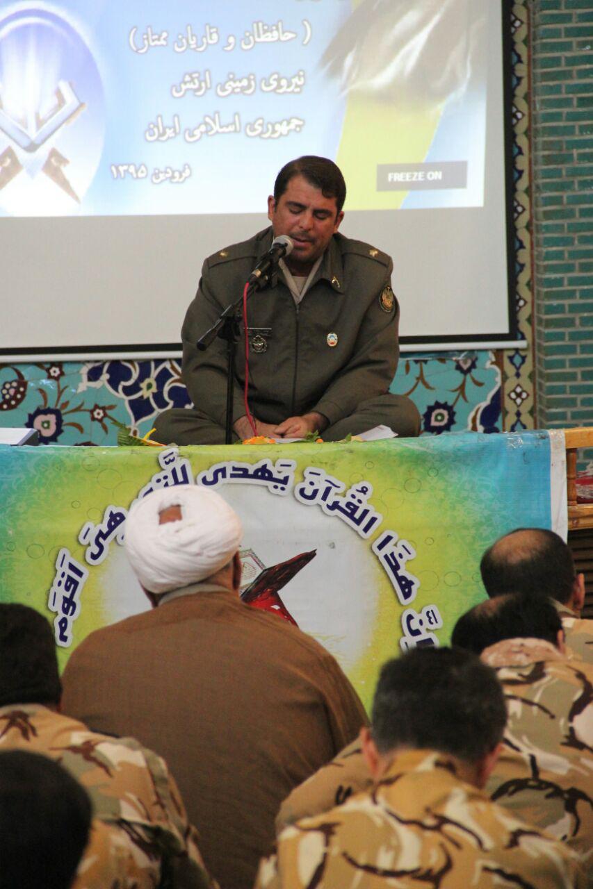 مسئول دارالقرآن الکریم نیروی زمینی ارتش اضافه کرد: این مراسم با اقامه نماز مغرب و عشا آغاز شد و سپس سروان ابوالفضل قدیانی به تلاوت آیاتی از قرآن پرداخت و در ادامه علی محمدی، رئیس عقیدتی ـ سیاسی میزبان تیپ 316 زرهی به سخنرانی پرداخت و طی این مراسم بر لزوم جاری شدن قرآن در زندگی و پیاده کردن سبک زندگی قرآنی تأکید کرد.
