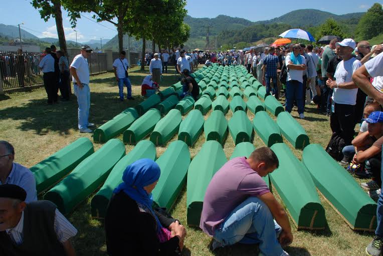مردم مسلمان سارایوو برای استقبال و وداع با اجساد این کشتهها در مقابل کاخ ریاست جمهوری بوسنی تجمع کرده بودند.