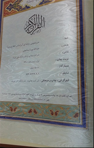 قرآن معطر چاپخانه بانک ملی