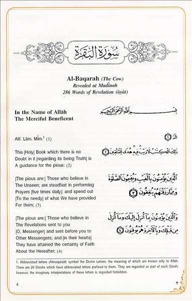 به دلیل اینکه سران کشورهای اسلامی مسلط به زبان عربی هستند، این قرآن نفیس بدون ترجمه فارسی به چاپ رسیده است که از جمله ویژگی‌های آن می‌توان به خط و صحافی بسیار زیبا و منحصر به فرد و بی ‌نظیر اشاره کرد.