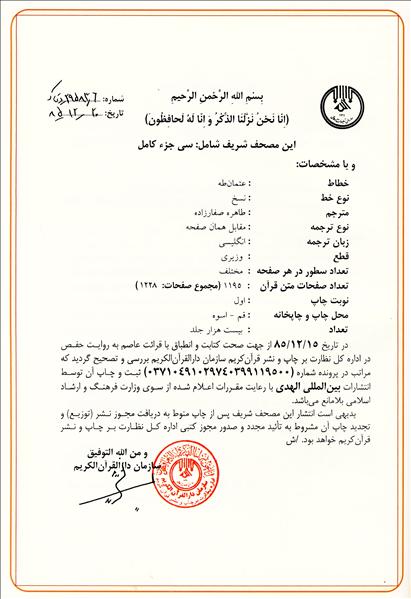 ترجمه انگلیسی قرآن صفارزاده
