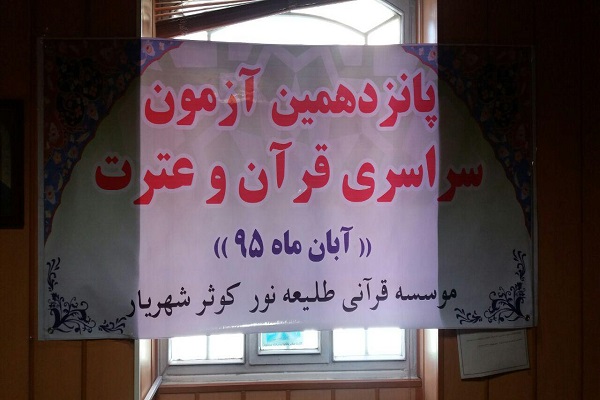 خبرگزاری بینالمللی قرآن(ایکنا)، مؤسسه طلیعه نور کوثر شهریار  همزمان با سراسر کشور مجری برپایی پانزدهمین آزمون قرآن و عترت وزارت فرهنگ و ارشاد  اسلامی بود.