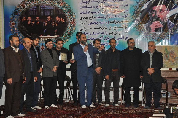 وی به دیگر برنامههای این مراسم اشاره کرد و افزود: در این مراسم، گروه تواشیح و مدیحهسرایی معارج تبریز که موفق به کسب رتبه پنجم تواشیح در مسابقات سراسری اوقاف شده بود به اجرای برنامه پرداختند و همچنین اجرای مهدی محمدزاده رتبه اول رشته ابتهال در این دوره از مسابقات حسن ختام این مراسم بود.