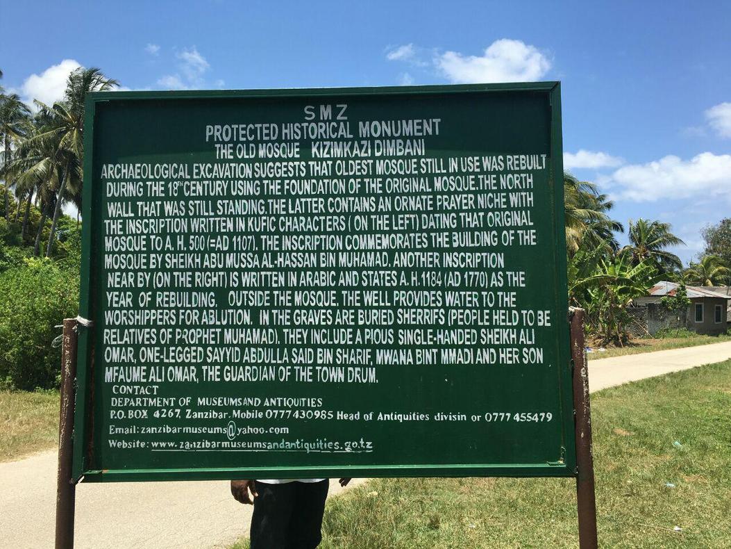 وی افزود: همانگونه که در تابلوی معرفی مسجد ذکرشده است و همچنین براساس گزارش «نویل چیتیک»، باستانشناس و آفریقاپژوه معروف که در مرکز آرشیو اسناد ملی زنگبار رؤیت شد، نهایتا براساس متن کتیبه مسجد، در کتیبه داخل محراب، دو تاریخ ذکر شده که یکی مربوط به ساخت مسجد و به خط کوفی است به تاریخ 500 هجری قمری و دیگری مربوط به مرمت مسجد است که به خط نسخ است به تاریخ 1184 هجری قمری.