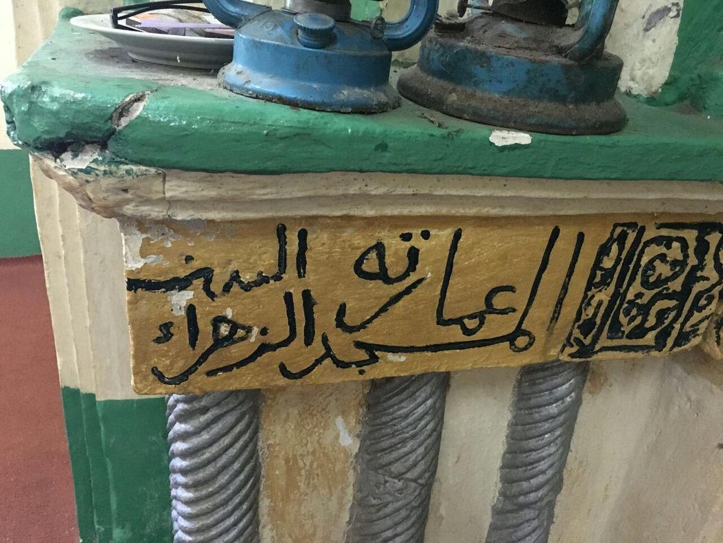 بر کاشیکاریهای این مسجد نام «فاطمه زهرا(س)» حک شده و مسجد تماماً از سنگ ساخته شده است و در داخل آن گچبریهایی به سبک مساجد دوره سلجوقی در ایران وجود دارد.
