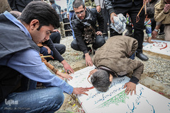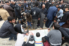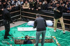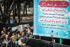 پیکر مطهر دو شهید مدافع حرم علی اصغر کریمی و جهانگیر رستمی همراه با پیکر دو شهید گمنام دوران دفاع مقدس در سالروز شهادت حضرت فاطمه الزهرا(س) صبح امروز پنج شنبه با حضور گسترده مردم در محله خانی آبادنو تهران تشییع شد.
