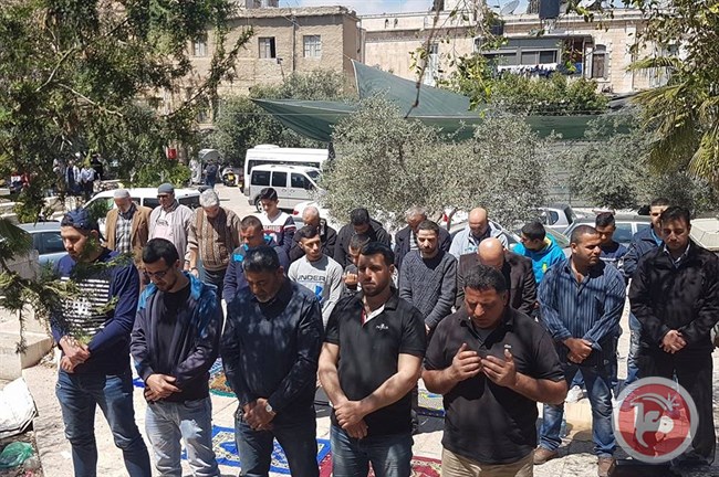 به گزارش خبرگزاری بین‌المللی قرآن(ایکنا)، به نقل از پایگاه خبری «معاً»، به دنبال اعمال ممنوعیت ورود نمازگزاران کمتر از پنجاه سال به داخل مسجد‌الاقصی از سوی رژیم صهیونیستی، شماری از نمازگزاران فلسطینی در اعتراض به این ممنوعیت در بیرون از درهای ورودی این مسجد اقدام به برگزاری نماز جمعه کردند.