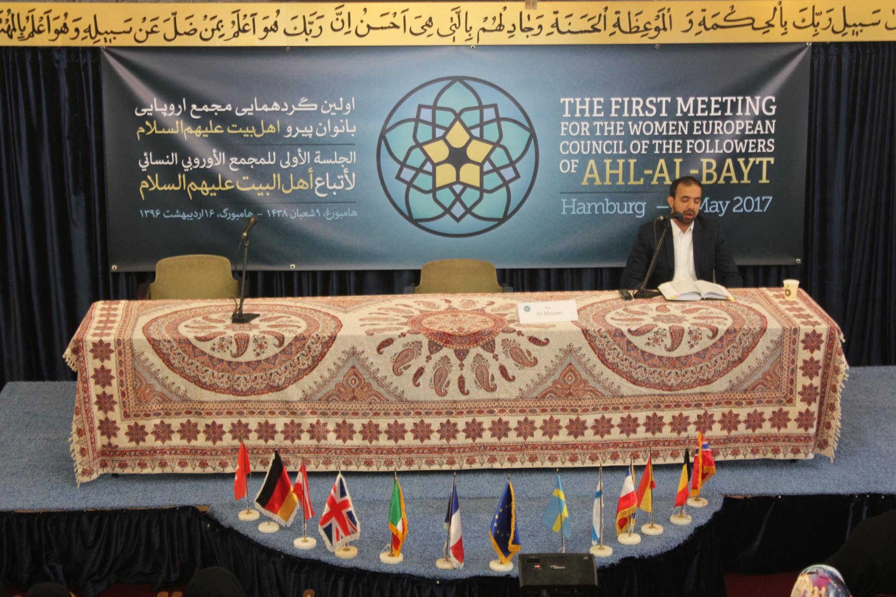 پروردگار مهربان را حمد و سپاس می‌گزاریم که به توفیق و عنایتش در آستانه میلاد آخرین ودیعه الهی امام عصر عجّل اللّه تعالی فرجه الشریف و ماه عظیم رمضان که ماه معنویت و بازگشت به هویت الهیِ انسان است، به عنوان زنان مسلمان اروپا، با یاد پیامبر اعظم صلّی اللّه علیه وآله وسلّم و اهل بیت عصمت و طهارت علیهم افضل صلوات المصلّین، در مسجد دیرپای امام علی علیه السلام هامبورگ گرد هم آمدیم تا با افتخار و مسرّت، تشکیل مجمع اروپایی بانوان پیرو اهل البیت علیهم السلام را اعلام نماییم.