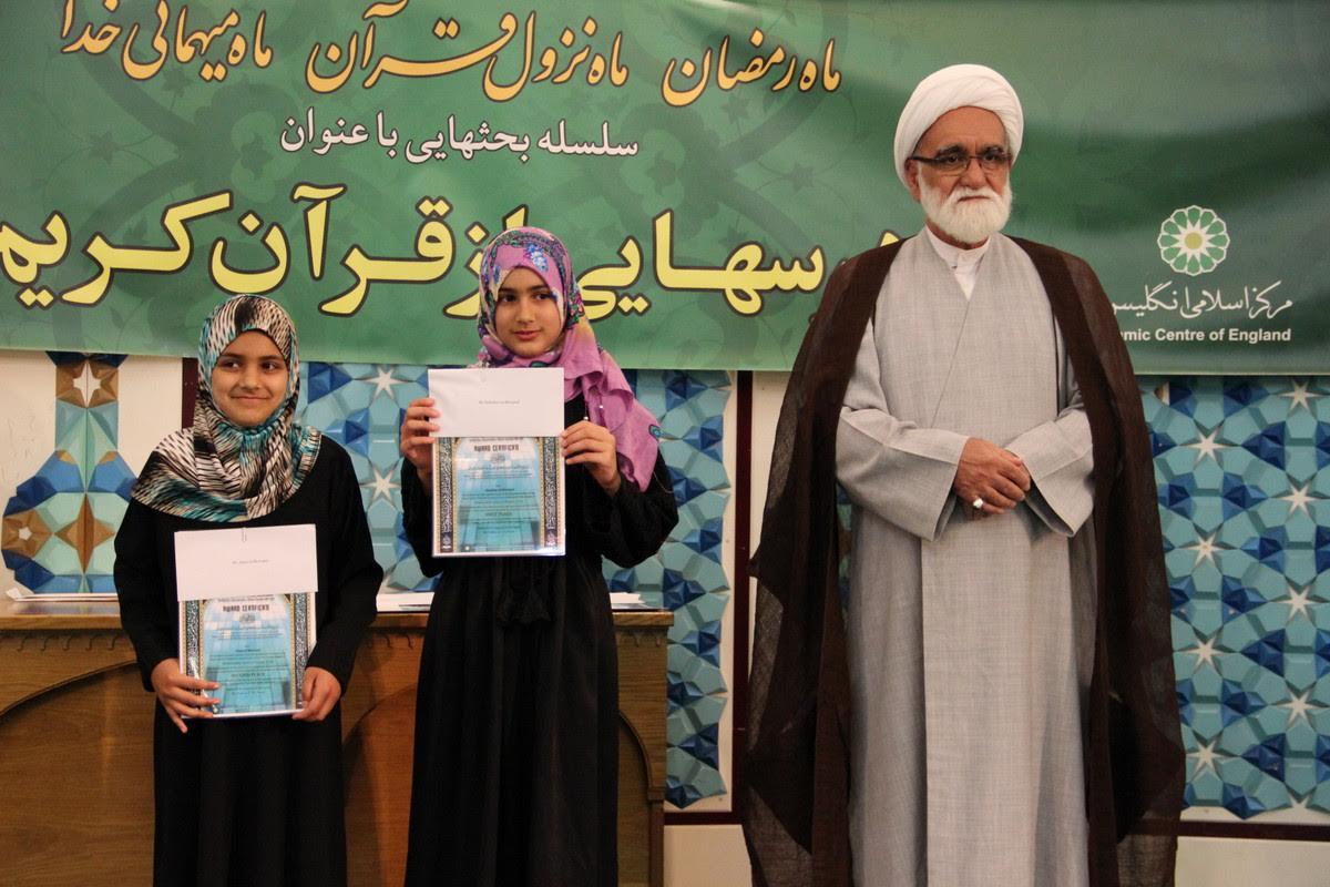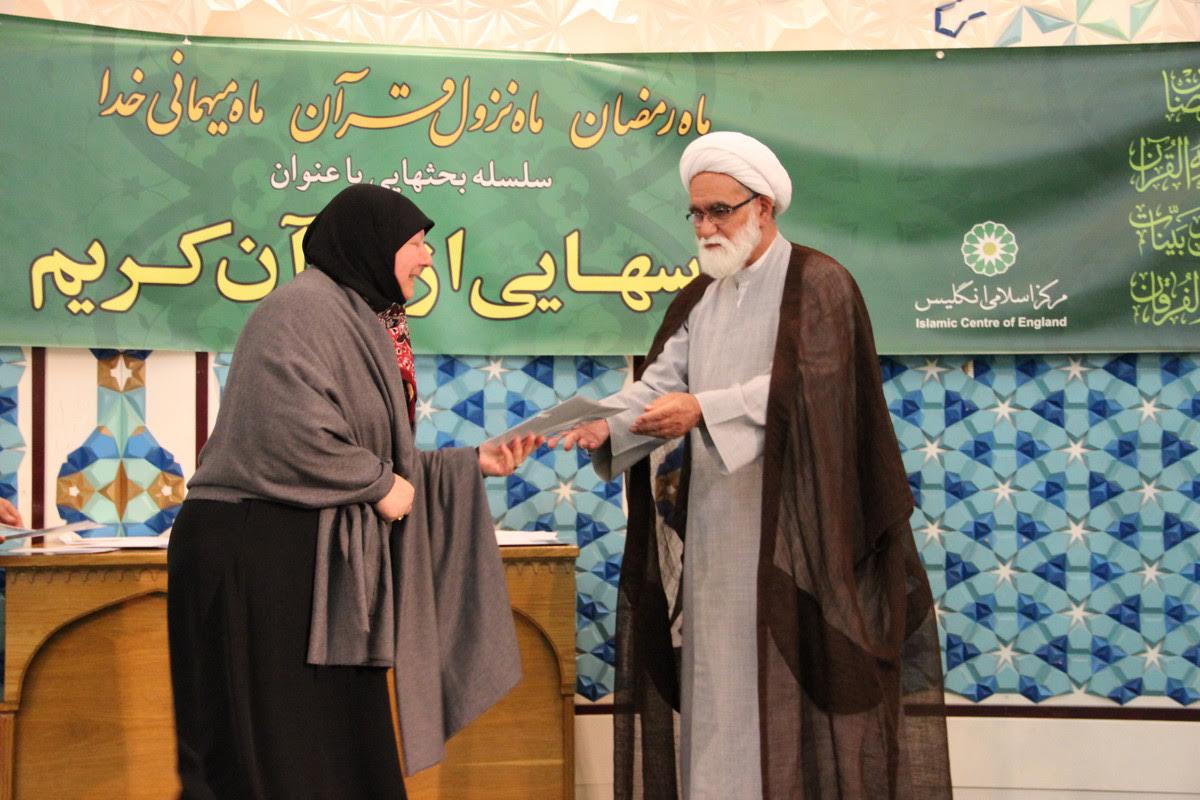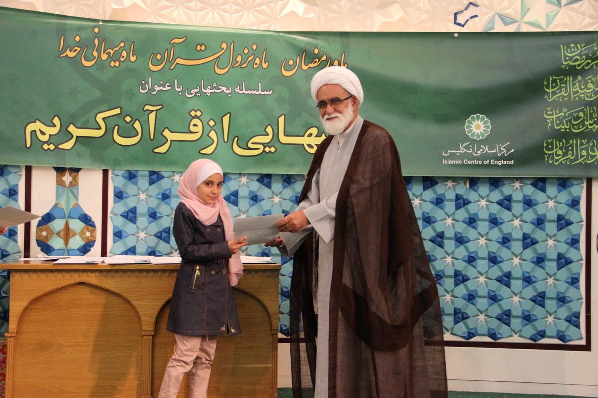 این گزارش حاکی است در آخرین بخش این مراسم، به برندگان دختر و پسر ردههای اول تا سوم رشتههای مختلف مسابقات جوایز و لوحهای تقدیر توسط حجتالاسلام والمسلمین معزی از سوی مرکز اسلامی انگلیس اهدا شد.