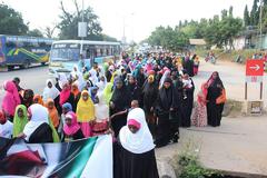 شرکتکنندگان در راهپیمایی نابودی اسرائیل را فریاد میزدند و در میدان بزرگ منطقه کی گوگو تجمع کرده و گرد هم آمدند.