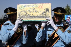 پیکرهای پاک و مطهر دو شهید گمنام دوران دفاع مقدس صبح امروز یکشنبه شانزدهم مهر ماه در شهرک آسمان پایگاه یکم شکاری مهرآباد تشییع و در جوار مسجد امام حسن مجتبی(ع) به خاک سپرده شد. محل شهادت این دو شهید گمنام ۱۹ و ۲۰ ساله در مناطق عملیاتی زبیدات و ام الرصاص بوده است.